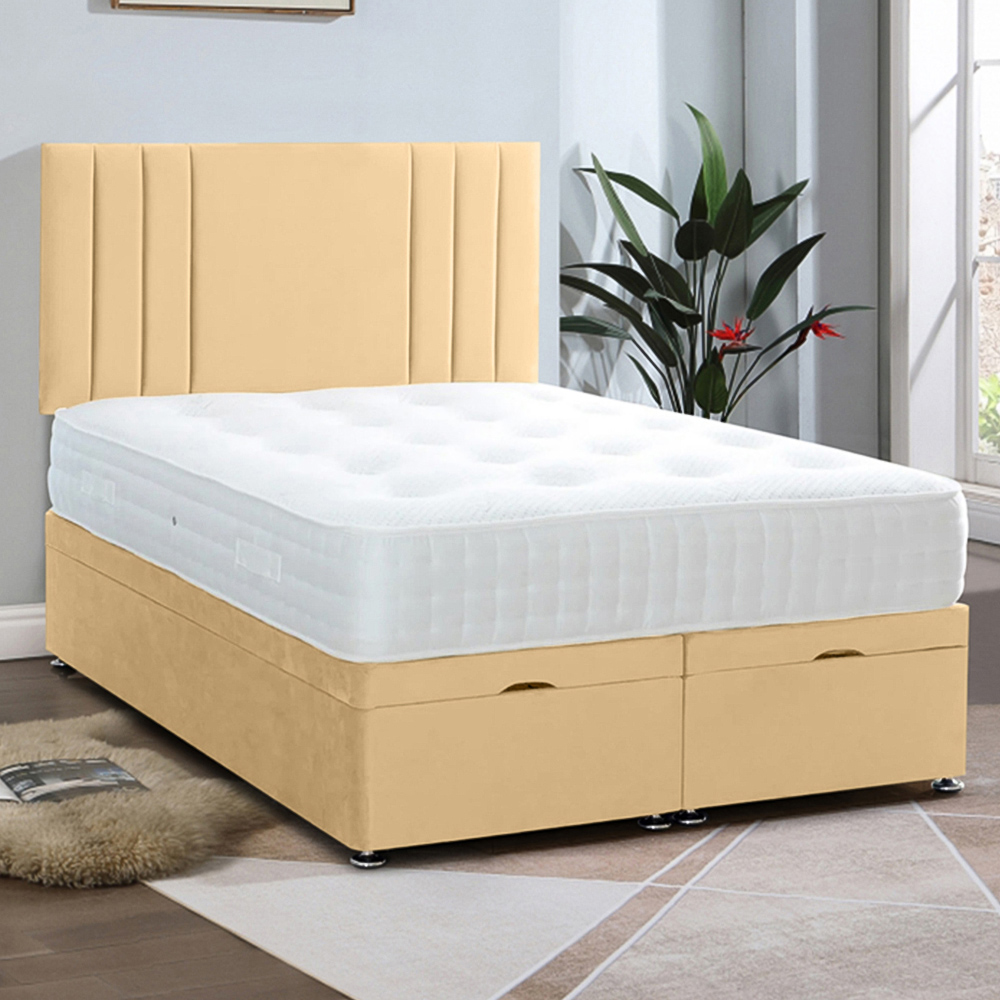 Experience unparalleled comfort and elegance with the Slumberlyn Divan Bed, a masterpiece that combines a chic Ottoman design with beige plush velvet fabrics. This king size bed features a striking 54-inch headboard, adorned with an elegant lined pattern that adds a contemporary touch to any bedroom. The integrated ottoman storage cleverly maximises space, providing a neat solution to store away essentials. Wrapped in luxurious plush blush velvet, this bed not only offers a sumptuous feel but also enhances the room with its sophisticated aesthetic.