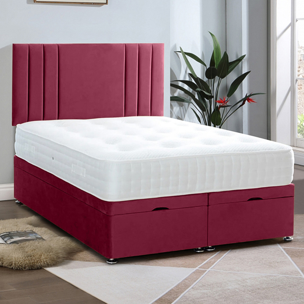 Experience unparalleled comfort and elegance with the Slumberlyn Divan Bed, a masterpiece that combines a chic Ottoman design with maroon plush velvet fabrics. This king size bed features a striking 54-inch headboard, adorned with an elegant lined pattern that adds a contemporary touch to any bedroom. The integrated ottoman storage cleverly maximises space, providing a neat solution to store away essentials. Wrapped in luxurious plush blush velvet, this bed not only offers a sumptuous feel but also enhances the room with its sophisticated aesthetic.
