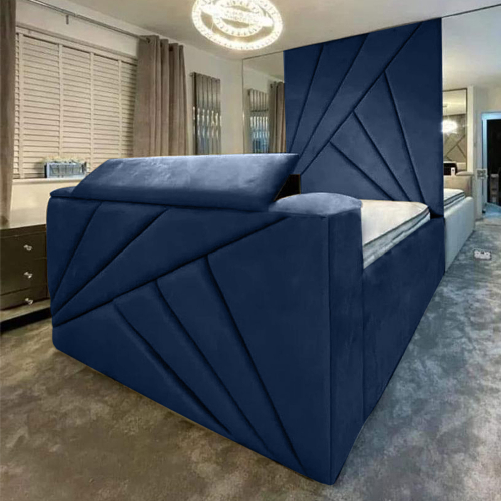 Introducing the Tina Plush Velvet TV Bed Frame—a testament to British craftsmanship and indulgent living. Immerse yourself in the epitome of luxury with plush velvet, featuring a stunning floor-to-ceiling headboard that adds a touch of grandeur to your bedroom sanctuary. Experience the perfect blend of style and convenience with the built-in remote, seamlessly elevating your TV-watching experience. The Tina invites you to personalise your space with a spectrum of colours, creating a bespoke retreat tailored to your taste. Designed for the modern connoisseur, the Tina Plush Velvet TV Bed Frame accommodates screens from 40" to 75". With VESA 600×400 or less mounting holes, this bed frame effortlessly marries opulent design with technological prowess, transforming your bedroom into a haven of comfort and entertainment. Elevate your living space with Tina—where premium quality meets unparalleled luxury.