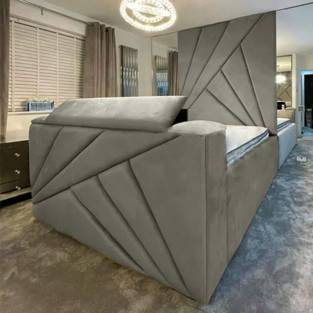 Eleganza Home Tina Double Grey Plush Velvet Bed Frame with Headboard and Remote