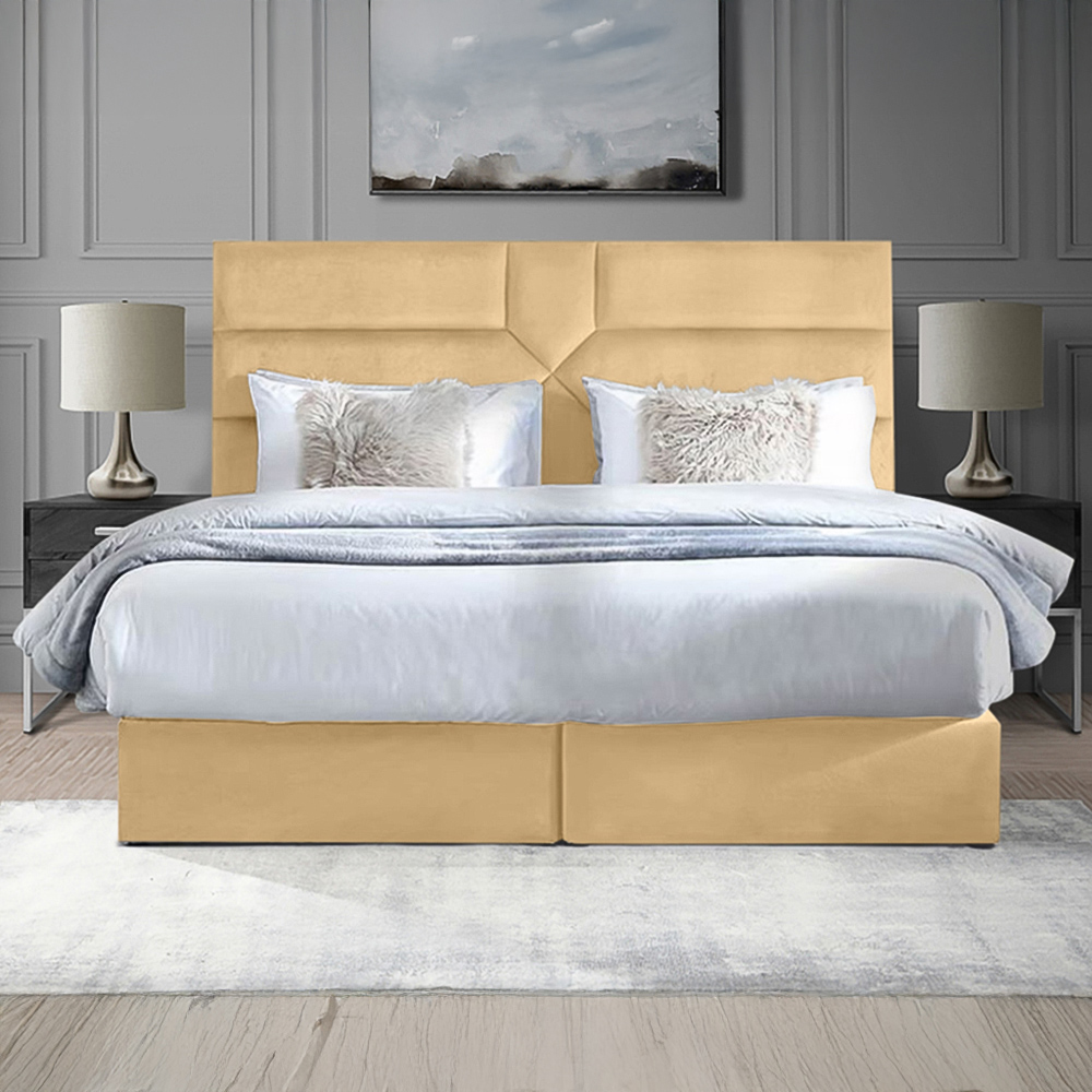 Indulge in the epitome of sophistication with the Tranquilite Divan Bed, a masterpiece that blends the timeless allure of Art Deco with unparalleled comfort. Handcrafted in the UK, this bed features a striking 54-inch headboard, meticulously designed with fan-like motifs that capture the essence of the Art Deco era. The plush velvet upholstery adds a layer of opulence to your bedroom decor, making it an ideal choice for those who appreciate both style and comfort in their sanctuary.