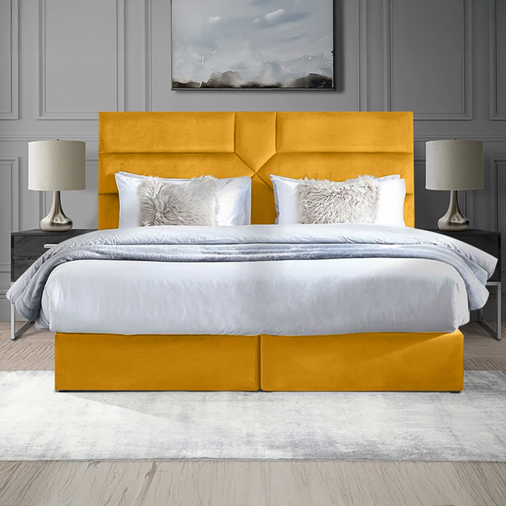 Indulge in the epitome of sophistication with the Tranquilite Divan Bed, a masterpiece that blends the timeless allure of Art Deco with unparalleled comfort. Handcrafted in the UK, this bed features a striking 54-inch headboard, meticulously designed with fan-like motifs that capture the essence of the Art Deco era. The plush velvet upholstery adds a layer of opulence to your bedroom decor, making it an ideal choice for those who appreciate both style and comfort in their sanctuary.