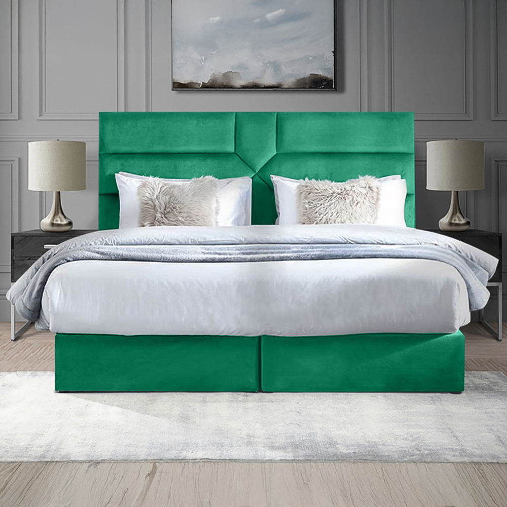Indulge in the epitome of sophistication with the Tranquilite Divan Bed, a masterpiece that blends the timeless allure of Art Deco with unparalleled comfort. Handcrafted in the UK, this bed features a striking 54-inch headboard, meticulously designed with fan-like motifs that capture the essence of the Art Deco era. The plush velvet upholstery adds a layer of opulence to your bedroom decor, making it an ideal choice for those who appreciate both style and comfort in their sanctuary.