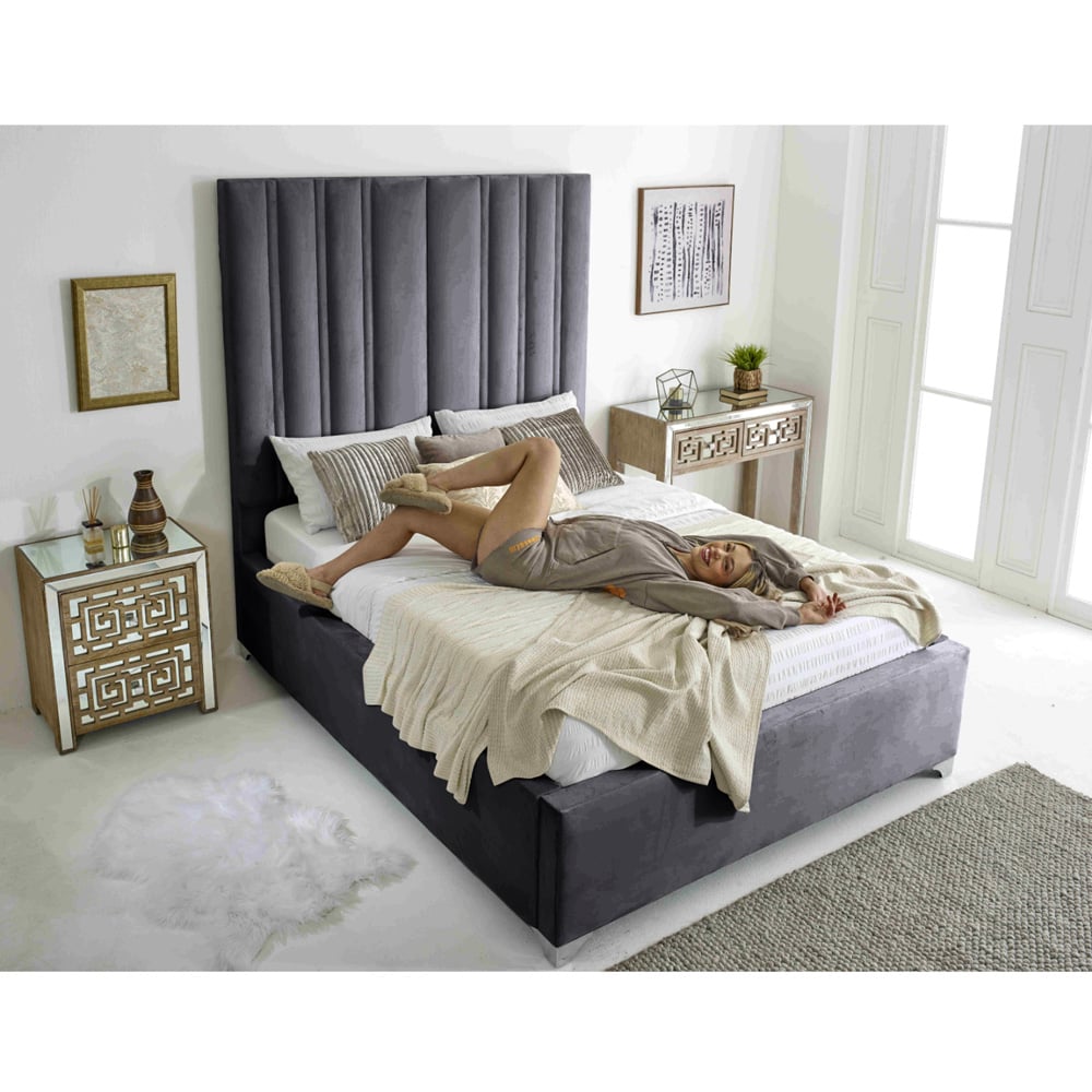 Introducing the Wilburn Plush Velvet Fabric Bed Frame, a showcase of British craftsmanship and modern elegance. Made from plush velvet fabric, this bed frame infuses your bedroom with luxurious comfort and style. The lined headboard design adds a touch of contemporary sophistication, making it a standout feature in any room. The Wilburn Bed Frame offers a perfect fit for any space. Elevate your bedroom with the Wilburn Plush Velvet Fabric Bed Frame, where superior quality meets timeless design.