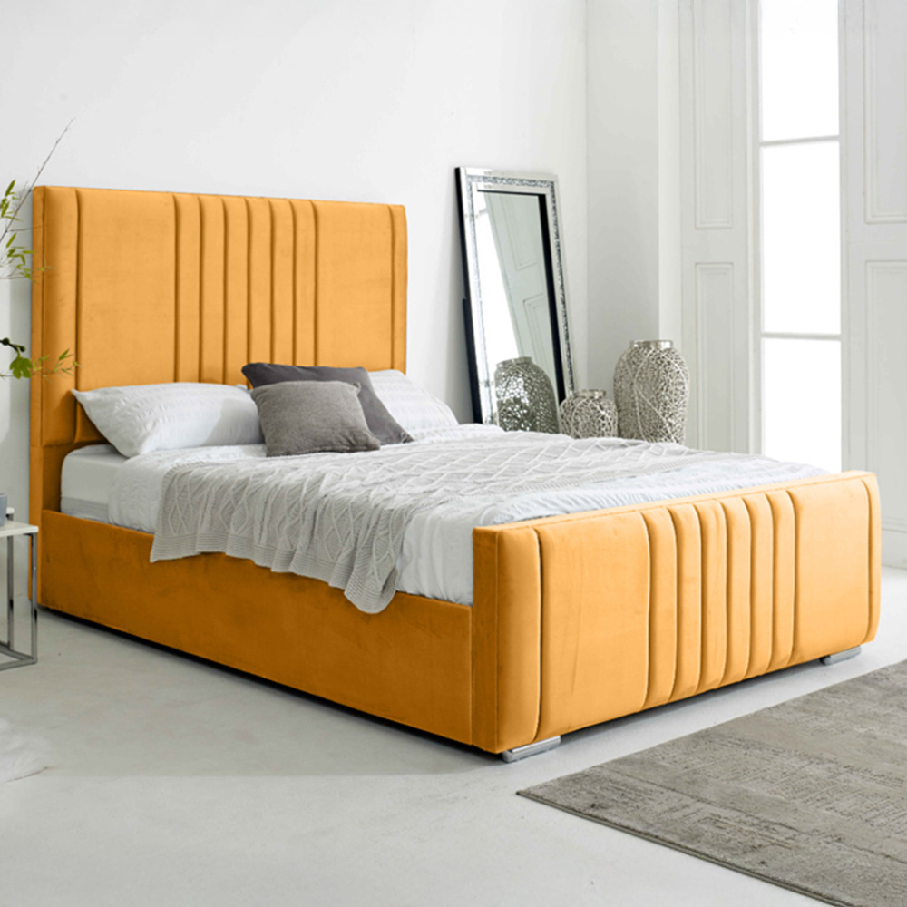 Introducing the Willard Plush Velvet Fabric Bed Frame, a stunning example of British craftsmanship and luxurious design. Made from luxurious velvet fabric, this bed frame brings both elegance and comfort to your bedroom. The lined headboard and footboard design adds a refined, contemporary touch, creating a cohesive and stylish look. The Willard Bed Frame ensures a perfect fit for any space. Transform your bedroom with the Willard Plush Velvet Fabric Bed Frame, where exceptional quality meets modern sophistication.