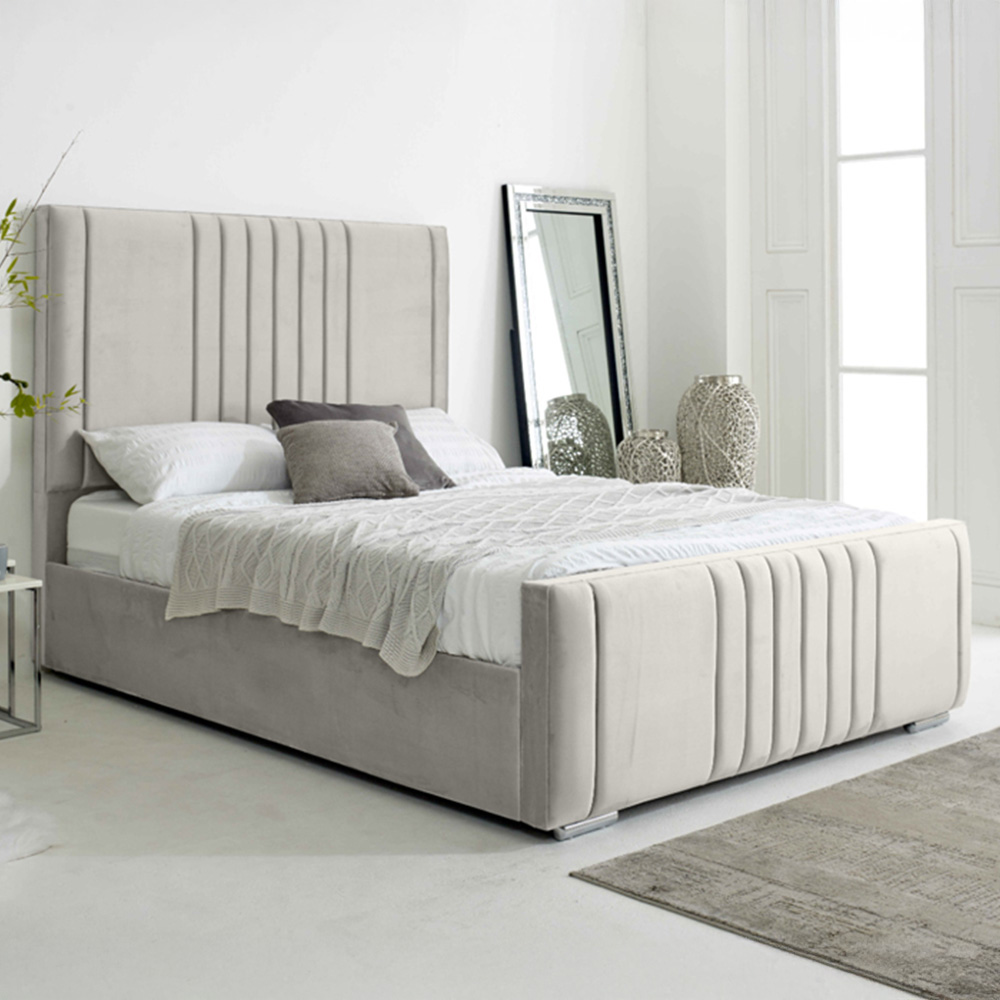 Introducing the Willard Plush Velvet Fabric Bed Frame, a stunning example of British craftsmanship and luxurious design. Made from luxurious velvet fabric, this bed frame brings both elegance and comfort to your bedroom. The lined headboard and footboard design adds a refined, contemporary touch, creating a cohesive and stylish look. The Willard Bed Frame ensures a perfect fit for any space. Transform your bedroom with the Willard Plush Velvet Fabric Bed Frame, where exceptional quality meets modern sophistication.