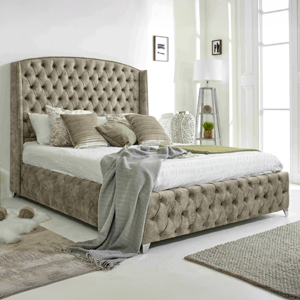 Introducing the Winfield Oakland Fabric Bed Frame, a stunning example of British craftsmanship and timeless design. Made from premium Oakland fabric, this bed frame adds a touch of sophistication and luxury to any bedroom. Featuring a classic Chesterfield winged design on both the headboard and footboard, the Winfield Bed Frame exudes opulence with its iconic button detailing and graceful curves. The frame is crafted to perfectly fit any space. Enhance your bedroom with the Winfield Oakland Fabric Bed Frame, where exceptional quality meets enduring style. Order now and experience the ultimate in comfort and elegance.
