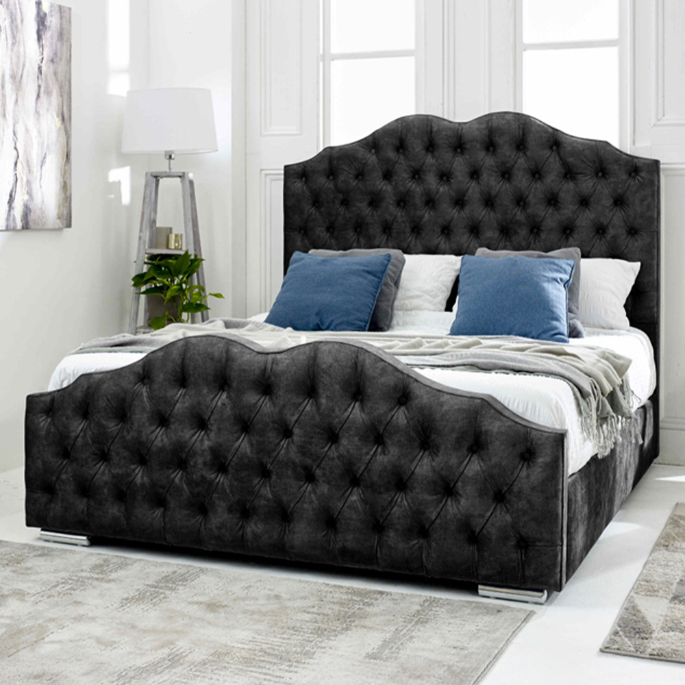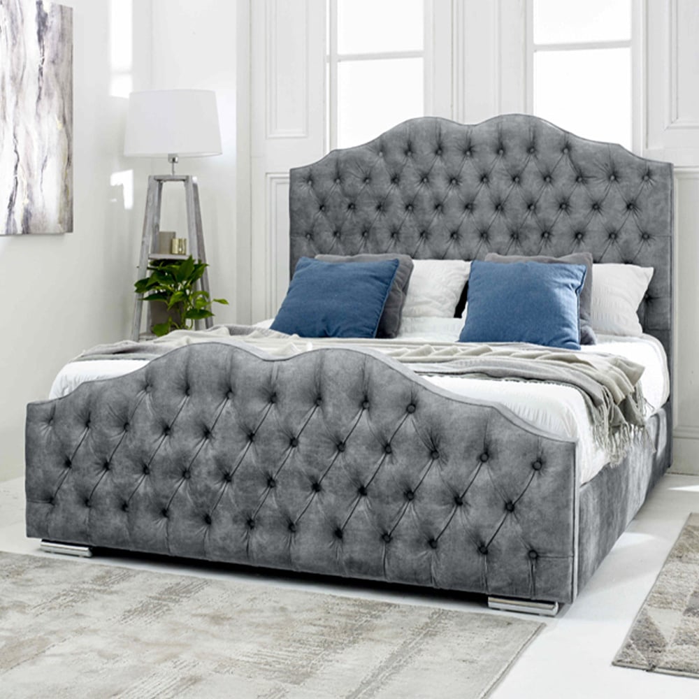 Eleganza Kenwood Super King Size Silver Marble Fabric Bed with Waved Headboard