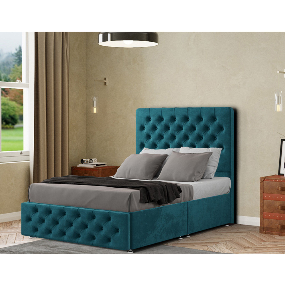 Eleganza Mary Chesterfield Double Emerald Plush Floor Standing Headboard