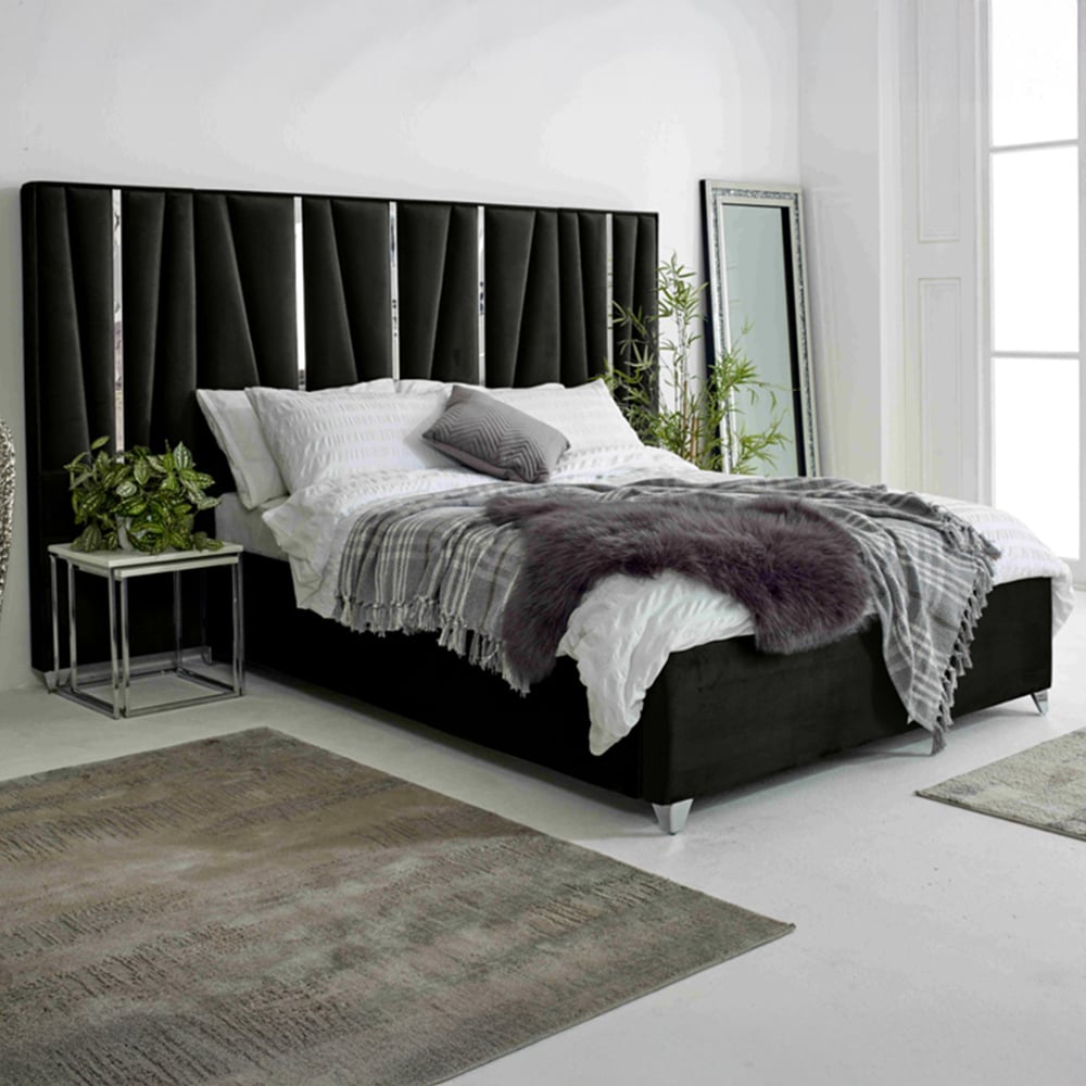 Introducing the Mila Plush Velvet Fabric Bed Frame, where luxury and modern elegance meet, meticulously crafted in Britain. Available in plush velvet fabric, this bed frame adds a touch of sophistication to any bedroom. The lined headboard design, beautifully enhanced with sleek silver strips, creates a stunning focal point that elevates your room’s decor. This Mila Bed Frame offers the perfect fit for any space. Transform your bedroom with the Mila Plush Velvet Fabric Bed Frame, combining exquisite quality with timeless style. Order now and indulge in the ultimate blend of comfort and elegance.