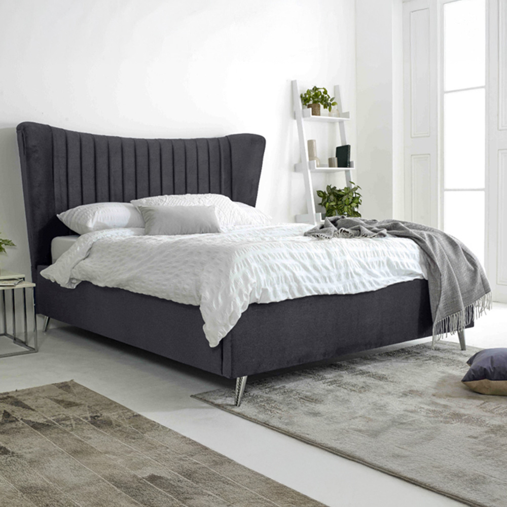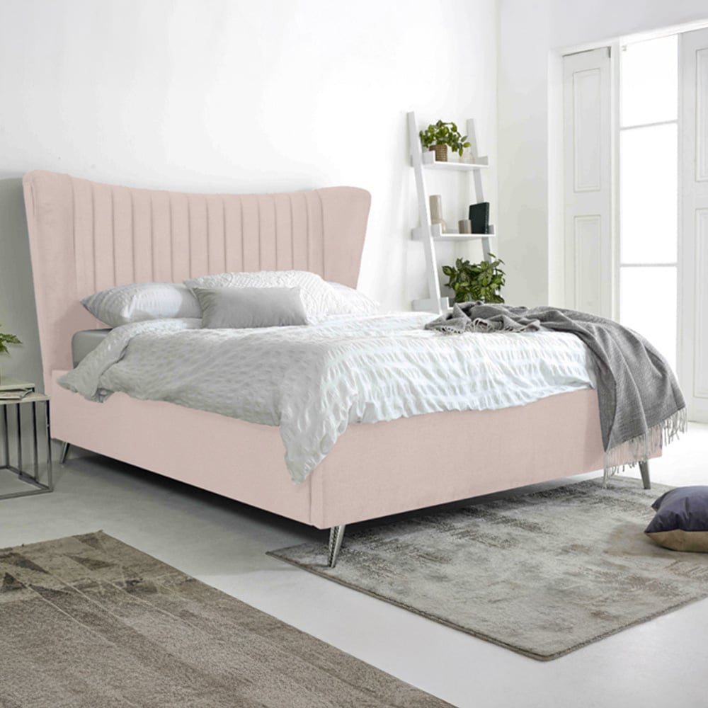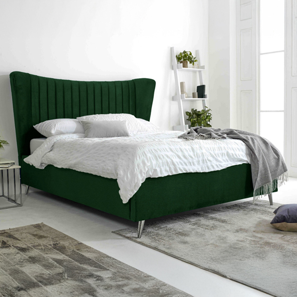 Introducing the Eleganza Tatum Double Teal Plush Velvet Bed Frame, a masterpiece of British craftsmanship that combines luxury and style. The lined winged headboard design enhances your space with its sophisticated, contemporary flair, creating a stunning focal point in your room.