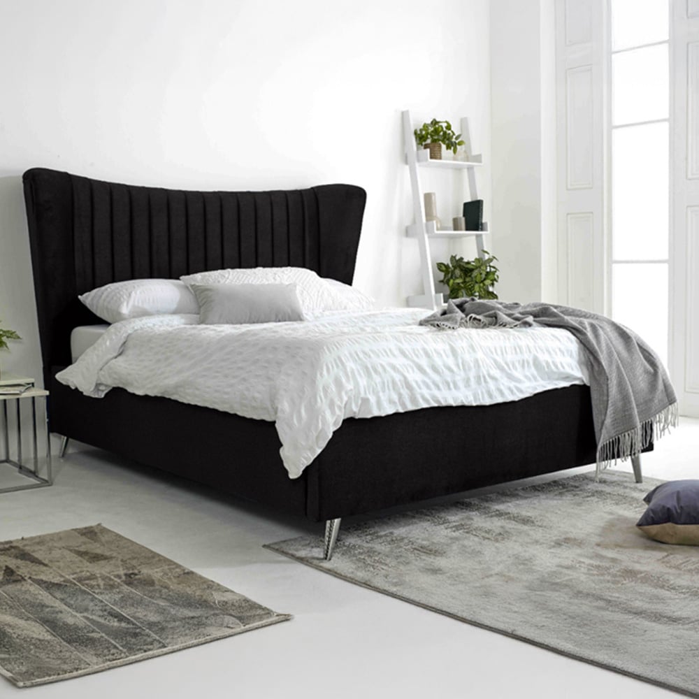 Eleganza Tatum Single Black Plush Velvet Bed Frame with Headboard