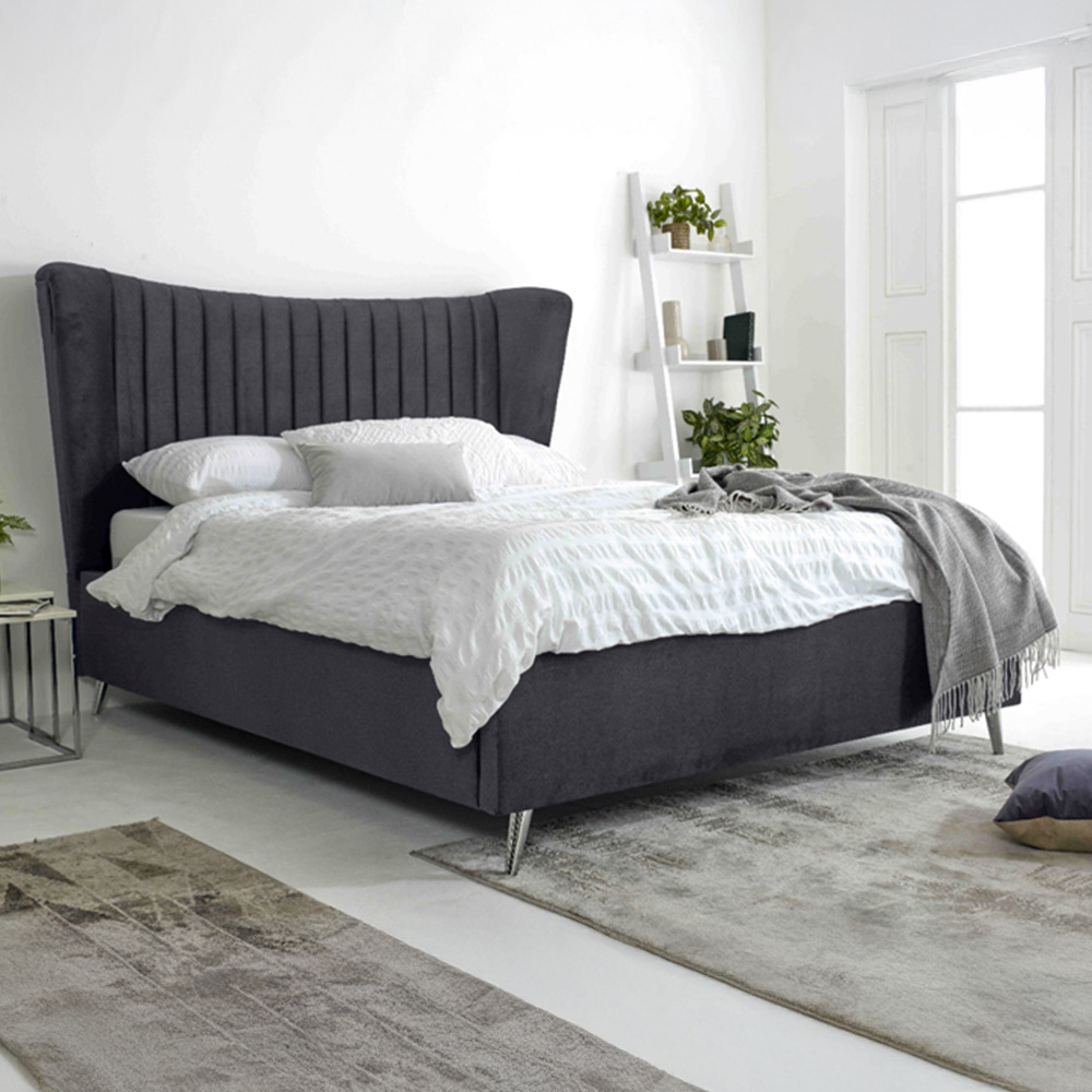 Introducing the Eleganza Tatum Super King Teal Plush Velvet Bed Frame, a masterpiece of British craftsmanship that combines luxury and style. The lined winged headboard design enhances your space with its sophisticated, contemporary flair, creating a stunning focal point in your room.