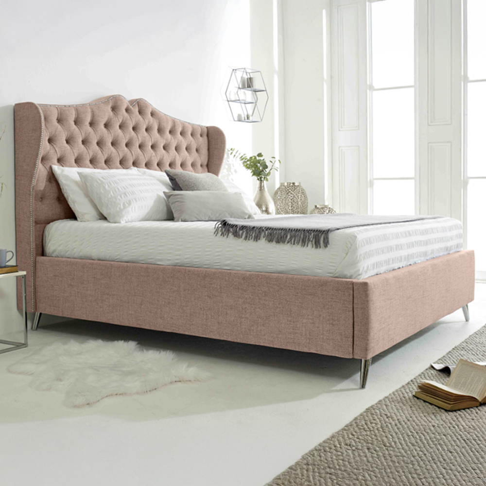Introducing the Eleganza Vanessa Single Dawn Grampian Fabric Bed Frame, a charming blend of British craftsmanship and whimsical design. The heart-designed headboard creates a delightful focal point, combining timeless charm with modern sophistication. Elevate your space with the Bed Frame, where exceptional quality meets heartwarming design.