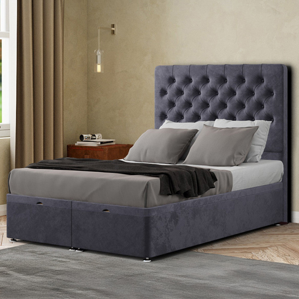 Introducing the Winchester Gas Lift Ottoman End Lift Bed - Crafted with Precision in the UK for Uncompromising Quality! Impeccable Design: Elevate your bedroom with the floor-standing headboard adorned with matching buttons, exuding timeless elegance and sophistication. Customized Elegance: Express your unique style with a variety of colours and fabric choices, ensuring seamless integration with your bedroom decor. Available in All Sizes: Whether you need a single, small double, double, king, or super king, we have the perfect size to fit your space. Gas Lift Convenience: Effortlessly access the spacious storage area beneath the bed with the convenient gas lift mechanism, combining style with practicality. Premium Quality: Crafted with top-tier materials, this ottoman bed is built to last, providing you with years of dependable use. Mattress Not Included: Please note that the mattress is not included, allowing you to personalize your sleep experience. Elevate your bedroom with the Winchester Gas Lift Ottoman End Lift Bed and experience the perfect blend of style, functionality, and quality. Create your own sanctuary of comfort—order yours today! Divan Ottoman End Lft, 54 inch Headboard - Does not include Mattress. Dimensions: 137 x 120 x 190cm.