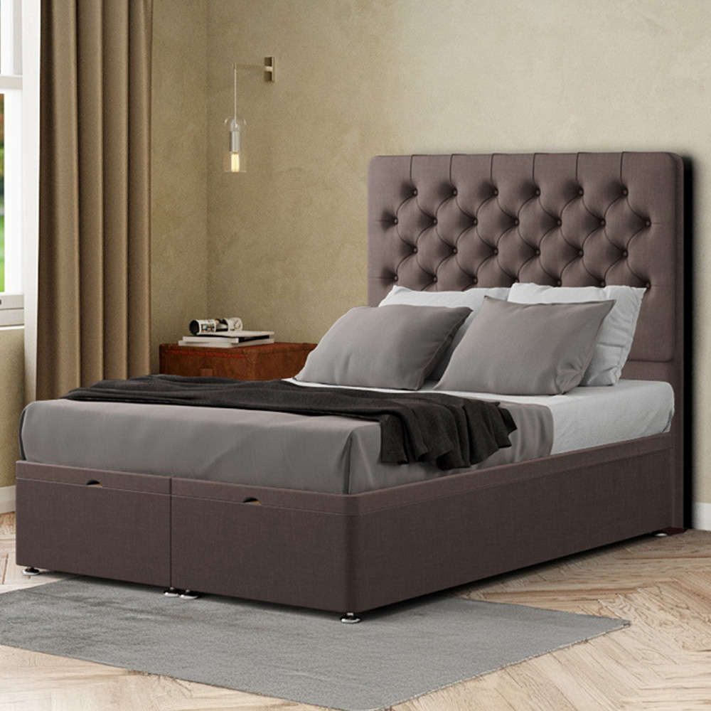Introducing the Winchester Gas Lift Ottoman End Lift Bed - Crafted with Precision in the UK for Uncompromising Quality! Impeccable Design: Elevate your bedroom with the floor-standing headboard adorned with matching buttons, exuding timeless elegance and sophistication. Customized Elegance: Express your unique style with a variety of colours and fabric choices, ensuring seamless integration with your bedroom decor. Available in All Sizes: Whether you need a single, small double, double, king, or super king, we have the perfect size to fit your space. Gas Lift Convenience: Effortlessly access the spacious storage area beneath the bed with the convenient gas lift mechanism, combining style with practicality. Premium Quality: Crafted with top-tier materials, this ottoman bed is built to last, providing you with years of dependable use. Mattress Not Included: Please note that the mattress is not included, allowing you to personalize your sleep experience. Elevate your bedroom with the Winchester Gas Lift Ottoman End Lift Bed and experience the perfect blend of style, functionality, and quality. Create your own sanctuary of comfort—order yours today! Divan Ottoman End Lft, 54 inch Headboard - Does not include Mattress. Dimensions: 137 x 120 x 190cm.