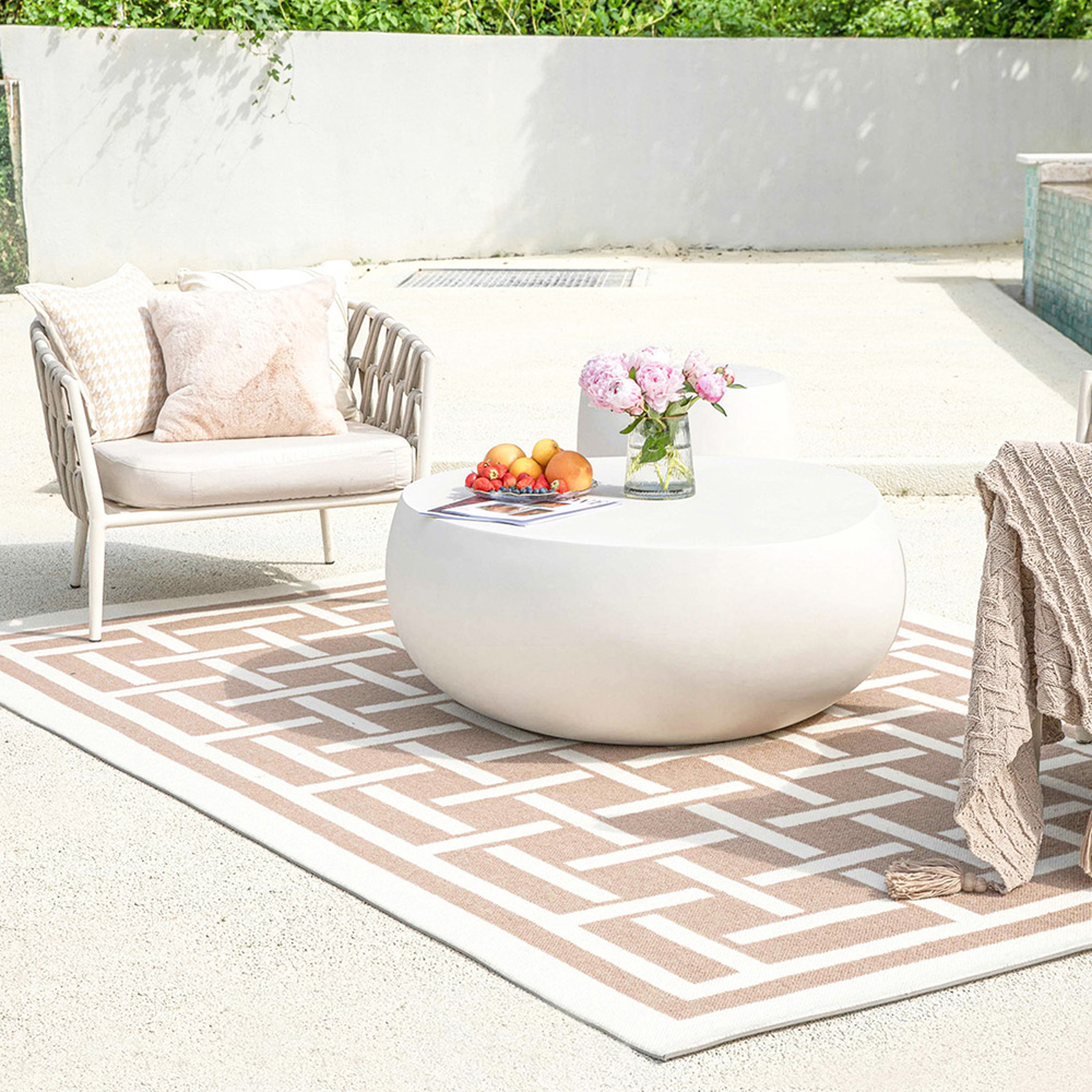 Enhance your space with the Elementi Ikaria Cream White GRC Coffee Table. Crafted from high-end glass-reinforced concrete, this table features an ultra-minimal and modern design, perfect for both indoor and outdoor use. Measuring H41 x W107.5 x D100.5cm, with a weight of 66.5kg, it combines style and functionality for a truly unique addition to your space.