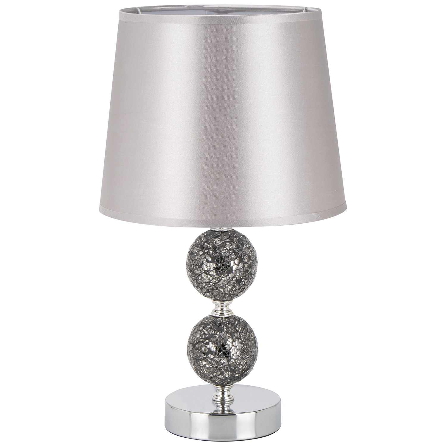 A breathtaking decorative light for your bedroom or living room, the Ella Mosaic Table Lamp showcases two stunning spheres that glisten as the light bounces off their mosaic detail. Fashioned with a chrome base and fitting and topped with a lustrous tapered shade, this lavish lighting feature will look dazzling atop any unit, on or off. Please click here to find our range of lightbulbs.