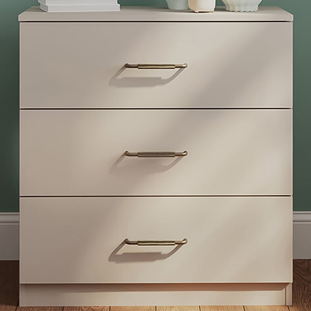 Combining modern style and practicality, this stylish Eloise Chest of Drawers is beautifully crafted in a cashmere finish—a perfect storage solution for all your treasured items. The sturdy frame is complete with spacious drawers adorned with stylish metal handles with a knurled centre for easy access and a smooth opening, whilst its flat top surface is great for displaying decorative ornaments, floral bouquets or your favourite photo memories. Ideal for the bedroom, study or living room, the modern yet practical drawers allow you to organise and store all your goods, from clothes and stationery to crafts and cosmetics. In addition, the elegant natural shade and simple design will complement a whole array of existing interior decoration styles.