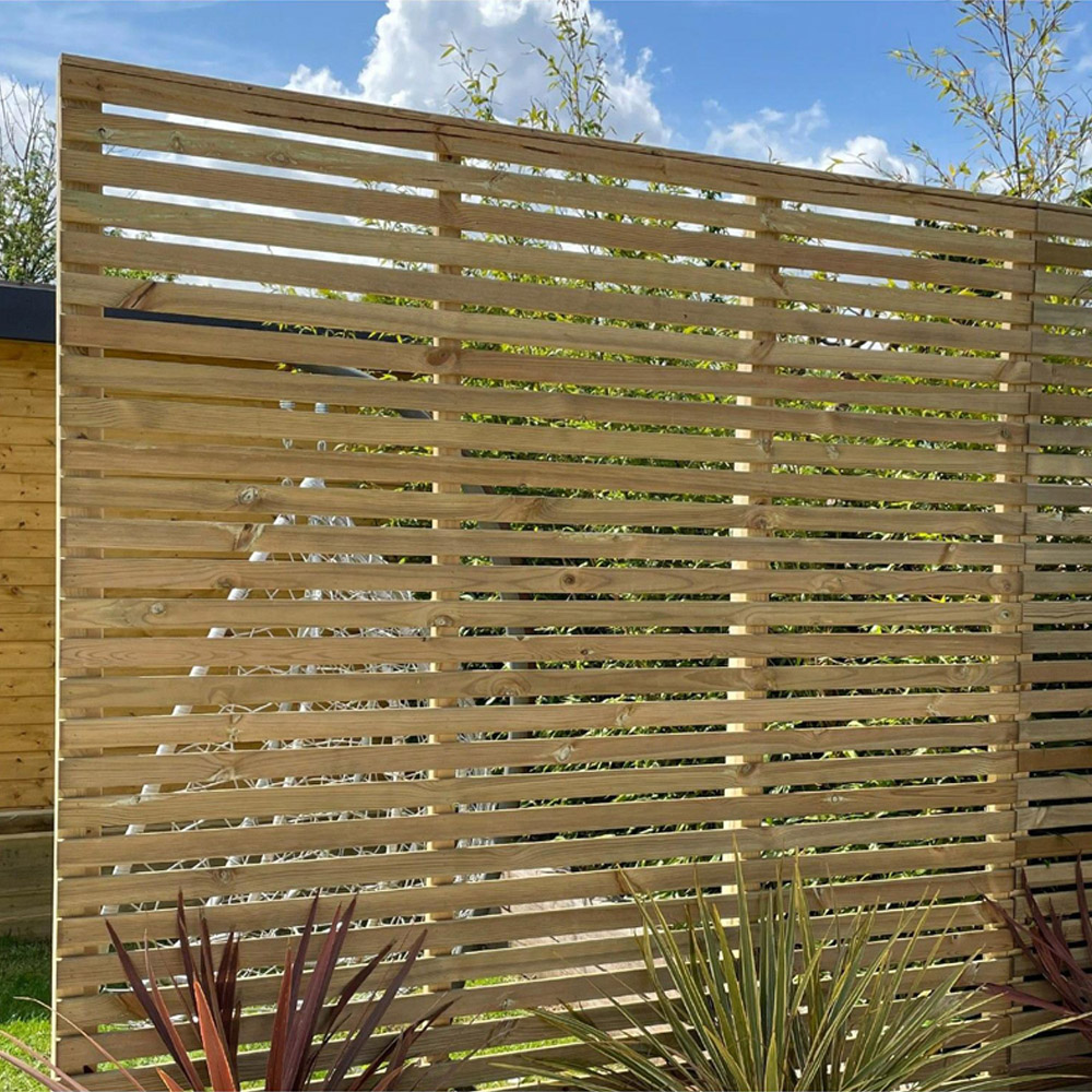 Our handcrafted Venetian style fence panels feature high quality smooth-planed and rounded timber slats mounted on the front with gaps between to allow light and breeze to pass through. With this design, the panel offers partial privacy, this makes the panel suitable for boundary fencing as well as screening or partitioning within your garden or around a patio or decking area. Each panel can be painted of stained to match the feel and look of your garden space. Please Note: Currently, we're unable to deliver this product to AB, KW, IV, FK, PH, KY, DD, CT, TR, CO, TD, SA and TN areas. We regret the inconvenience and will keep you posted when it's available to order for the mentioned postcodes.