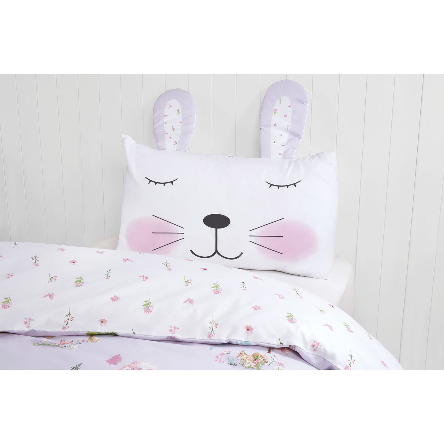 Full of super adorable aesthetics, the Enchanted Forest Single Multicolour Duvet Set is coloured a super soft pink and features illustrations of sweet woodland scenes. With serenely standing under trees, foxes frolicking through the forest, owls and hedgehogs resting amongst flowers, this beautiful bedding set will bring a sweet vibe to any child's bedroom. For even more delight, the pillowcase is shaped like a sleeping bunny's face, complete with ears. This bedding set is woven from a slightly polyester-heavy polycotton blend to ensure it is both soft on your child's skin and easy to care for. This set comes complete with one matching pillowcase.