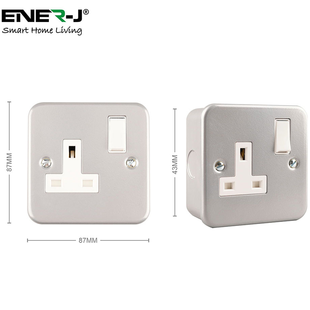 ENER-J 1 Gang 13A Metal Clad Single Switch Socket
