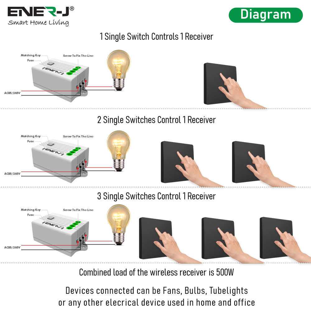 Experience the future of smart switches with our innovative 1 Gang Wireless Kinetic Switch in Black Body. Powered by kinetic energy technology, this switch requires no batteries, wiring, or drilling holes, making it eco-friendly and easy to install anywhere without additional costs or labor. The encrypted wireless signal ensures secure communication, allowing the switch to work flawlessly up to 30 metres indoors and up to 100 metres outdoors. Designed to fit seamlessly into any decor, the switch is compatible with various light types and can be used in limited spaces. Enjoy the convenience of controlling multiple lights or multiple switches controlling one light with flexible coding options.