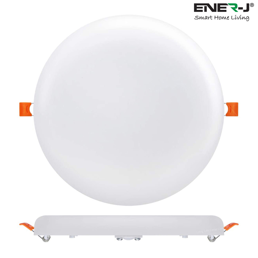 The remarkable 12W 3000K Frameless LED Panel Downlights from ENER-J is designed to redefine your lighting experience with a seamless blend of style and functionality. This pack of four units brings you a host of features that make these downlights the perfect choice for various applications. Crafted with PC Cover Material, the downlights showcase exceptional anti-UV and high-temperature resistance, ensuring long-lasting durability and reliability. The innovative no-frame Design offers a circular 360-degree beam angle, distributing light evenly in all directions while also providing a focused downward spot model for targeted illumination. Equipped with a Smart Constant Current Driver, these downlights are safeguarded against over-temperature, short circuits, and voltage fluctuations, guaranteeing stable and safe performance. Versatility is at your fingertips with the option to use these downlights either recessed or flush mounted, giving you the freedom to create the perfect lighting setup to suit your needs. Ideal for illuminating offices, shops, work environments, and modern home lighting schemes, our Frameless LED Panel Downlights are an energy-efficient solution (A+ rated) that brilliantly brightens up any space.