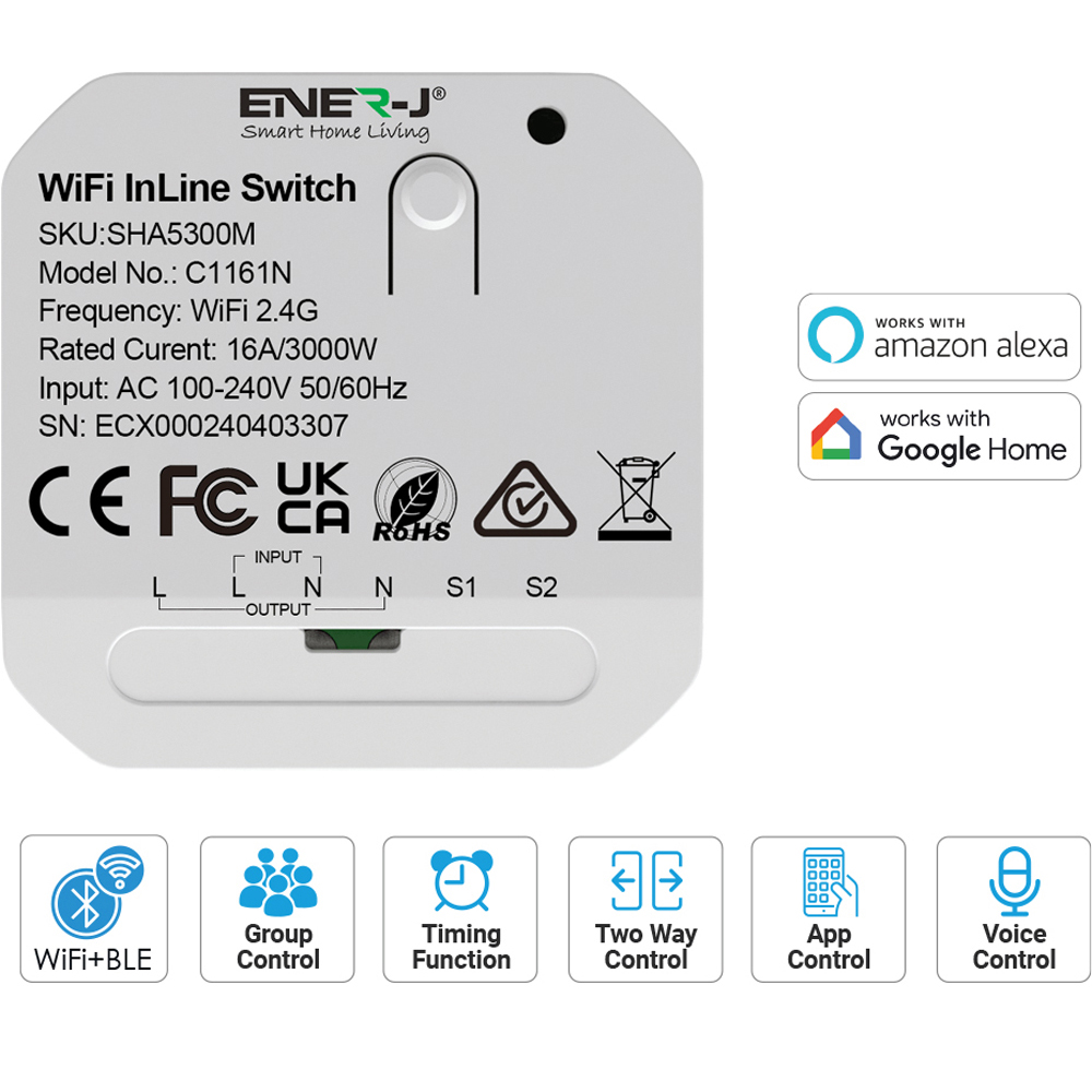 Upgrade your home to a smart haven with the ENER-J Smart Wi-Fi Switch Module. This ultra-compact module transforms your existing light switches into smart switches without replacing the physical setup. Control your lights remotely through the Smart Life or Tuya app and enjoy seamless voice control with Alexa or Google Assistant. Easy to install, versatile, and packed with advanced features, it’s the perfect solution for modern smart homes. Suitable for homes, offices, and rental properties—modernize without replacing existing switches. Sleek, optimized design with upgraded texture and finish.