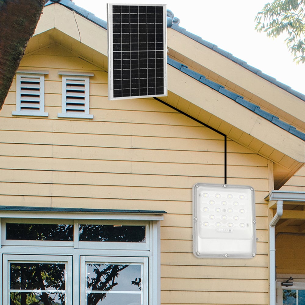Keep your outdoor space well-lit with this Ener-J 200W LED Floodlight with Solar Panel and Remote. Energy-saving, this floodlight comes with a monocrystalline silicon solar panel, which is the finest panel with maximum efficiency. The solar panel takes around six to eight hours for a single charge and lasts for up to three days. Durable and sturdy, the solar panel and floodlight are IP65 waterproof to withstand harsh weather conditions with ease. Also, it is made with a long-lasting aluminium and glass material, making it a reliable option for long-term use. Apart from this, it comes with a remote control, a light sensor, and auto mode for hassle-free operation. Its remote control has various lighting modes and can be used to control the solar lights from a distance of 20 to 30 feet. Easy to install, the pack includes a 5-metre cable to effortlessly fix the solar panel on your roof and the floodlight accordingly. For added convenience, the product comes complete with an adjustable wall mount bracket offering multiple installation options.