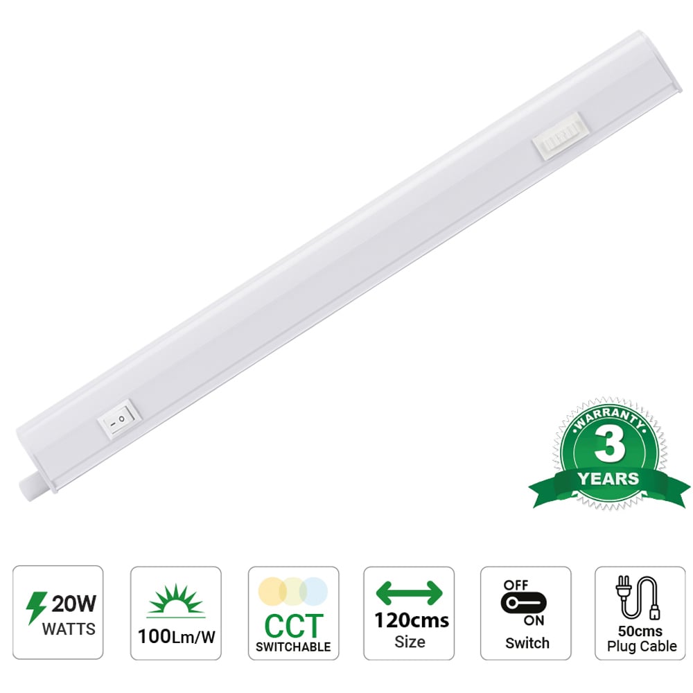 Elevate your lighting experience with the T5 LED Linear Batten 20W, designed for versatility and convenience. Featuring 2 units of compact 120cm length and 3CCT selectable colour temperatures (3000K, 4000K, and 6000K), this LED light adapts to any ambiance or task requirement. Its sleek design and integrated on/off switch make it an ideal choice for under-cabinet lighting, task areas, or accentuating spaces in your home, office, or store. Constructed with durable PC material and backed by a 3-year warranty, this energy-efficient light is the perfect blend of functionality and style.