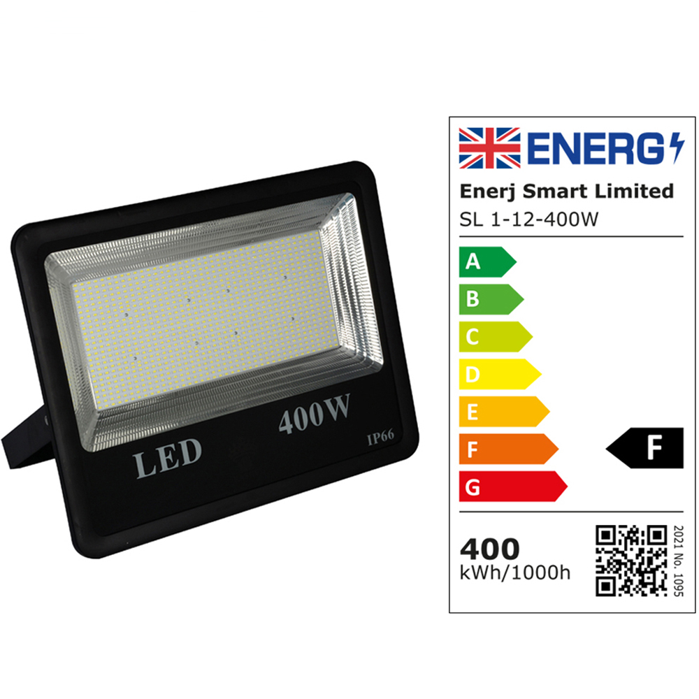 Illuminate your outdoor spaces with ENER-J 400W LED Floodlights 450 x 330 x 42mm. This super bright floodlight provides an impressive 30000 lumens of 6500K daylight, equivalent to a 1500W halogen light, while being energy-efficient and long-lasting. The advanced Epistar SMD LED chips ensure instant start-up, making it ideal for security and general floodlighting needs. With a durable IP65 waterproof rating and wide voltage compatibility, this floodlight is suitable for various applications in garages, porches, gardens, lawns, and yards. Enjoy reliable illumination backed by a 2-year warranty.
