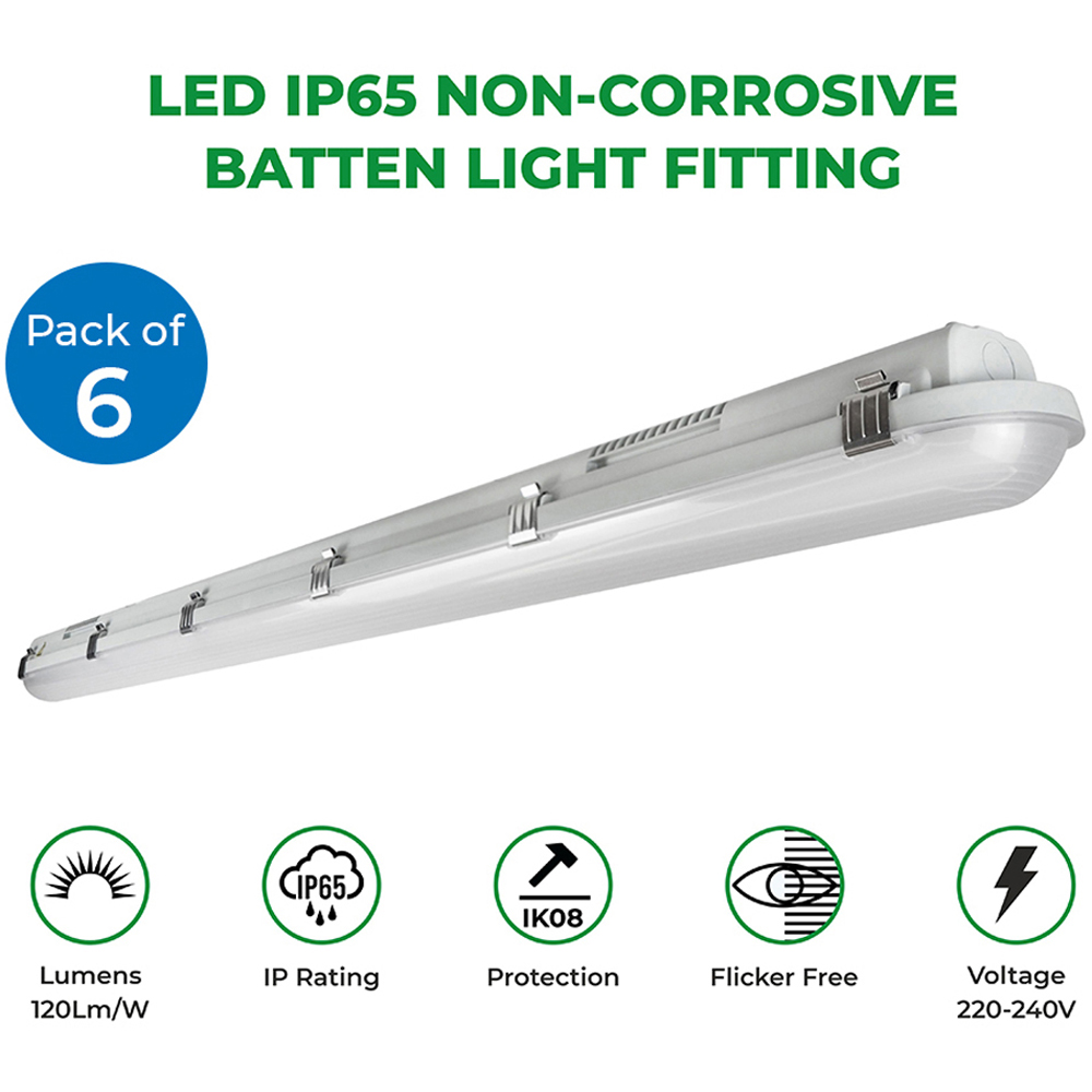 Enhance your outdoor lighting with our LED Non Corrosive IP65 Batten Fitting Light. This 120cms, 40W, 6000K ultra-bright light provides 4800 lumens of illumination, making it ideal for parking lots, garages, factories, warehouses, and more. With an IP65 rating, it's waterproof and dustproof, ensuring durability in outdoor settings. Save energy and maintenance costs with its 20000 hours of operation and instant start-up feature.