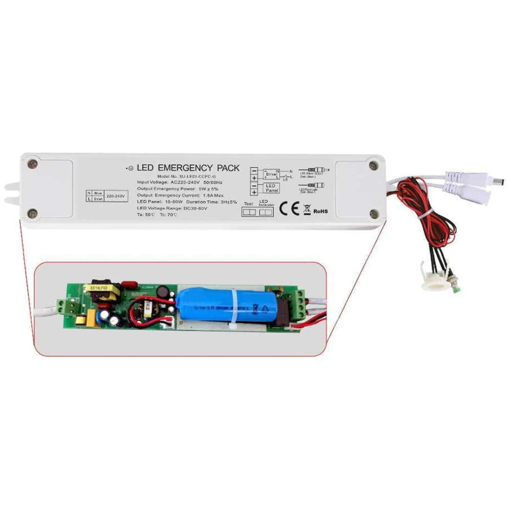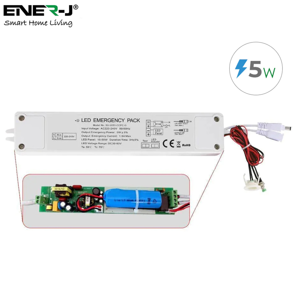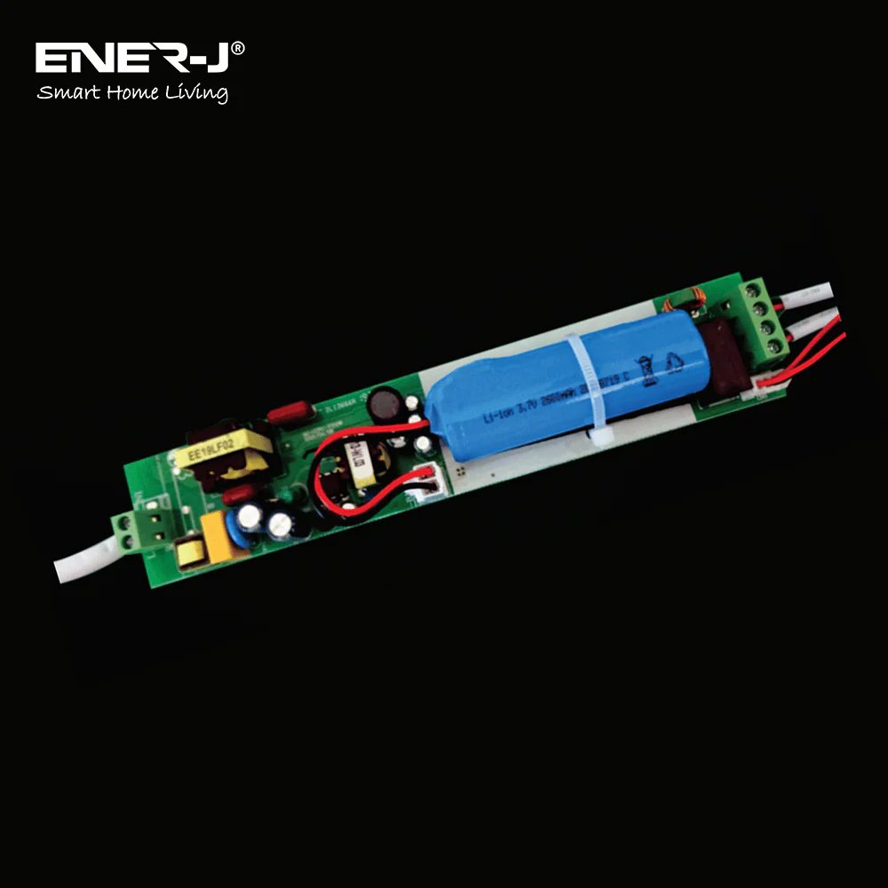 With a universal emergency module, the 5W Plug and Play Emergency Battery Kit for 6W to 70W LED Panels from ENER-J allows you to convert a standard LED panel to an emergency fitting quickly and easily. Ideal to provide three hours of maintained emergency lighting, it is compatible with LED luminaires with separate DC LED drivers, including LED Panels from 6W to 70W for maintained and non-maintained emergency lighting systems. The internal Li-Ion battery for improved lifespan allowing frequent partial discharge without capacity reduction, while the over-charge, over-current, short circuit and deep discharge protection for the battery offers added safety.
