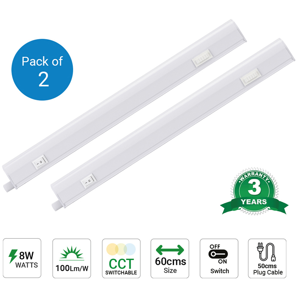 Elevate your lighting experience with the T5 LED Linear Batten 4W, designed for versatility and convenience. Featuring a compact 30cm length and 3CCT selectable colour temperatures (3000K, 4000K, and 6000K), this LED light adapts to any ambience or task requirement. Its sleek design and integrated on/off switch make it an ideal choice for under-cabinet lighting, task areas, or accentuating spaces in the home, office, or store. Constructed with durable PC material and backed by a 3-year warranty, this energy-efficient light is the perfect blend of functionality and style. 3CCT Selectable: Choose between warm (3000K), natural (4000K), and cool (6000K) colour temperatures with a simple DIP switch. Compact and Stylish: The slim design fits seamlessly in under-cabinets, desks, or display areas. High Efficiency: Delivers 100 lumens per watt, providing bright illumination with minimal energy consumption.