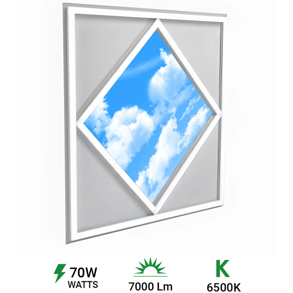 Transform any room with the ENER-J 70W 6500K Cool White Diamond Sky and Cloud Ceiling LED Panel Light 600 x 600mm. This innovative panel light combines a unique diamond-shaped frame with a serene blue sky and cloud design at its centre, creating an inviting ambiance ideal for spaces that benefit from a calming, uplifting atmosphere. With 70W of power and 7000 lumens, it offers both style and functionality for various settings, including offices, medical waiting rooms, retail spaces, schools, and even home environments. Pack of 4.