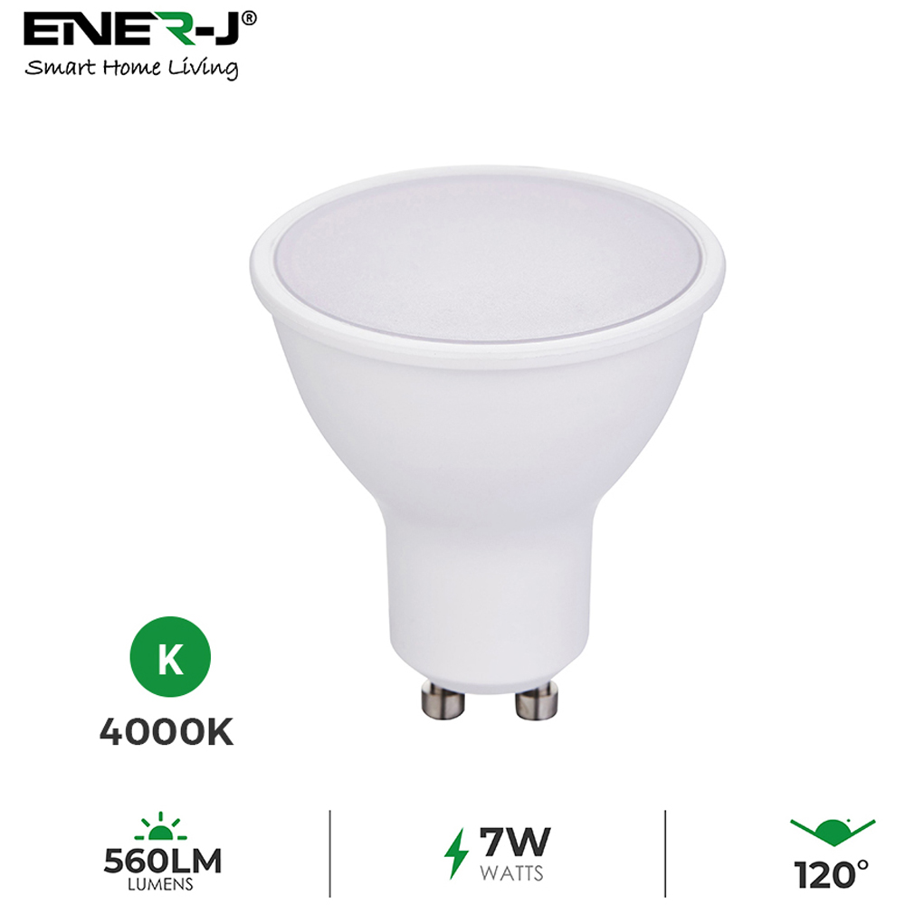 Brighten up your home with Ener-J 7W GU10 550Lm 4000K LED Lamp. It offers excellent colour consistency, high-quality lighting performance and is ideal for use in a place that needs brighter light. Environment friendly – it comes with low power consumption and an extremely long life of up to 20,000 hours. It is easy to install without a transformer, perfect for traditional GU10 Halogen bulb replacement.