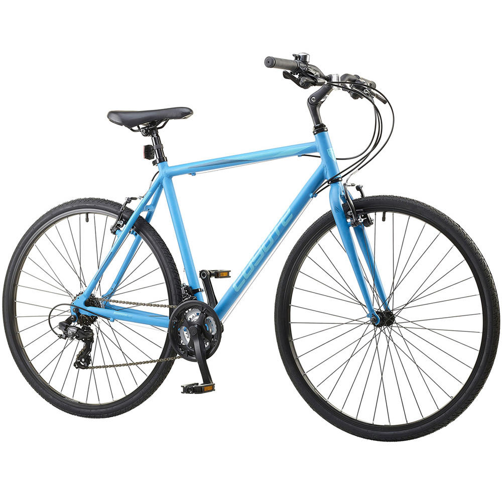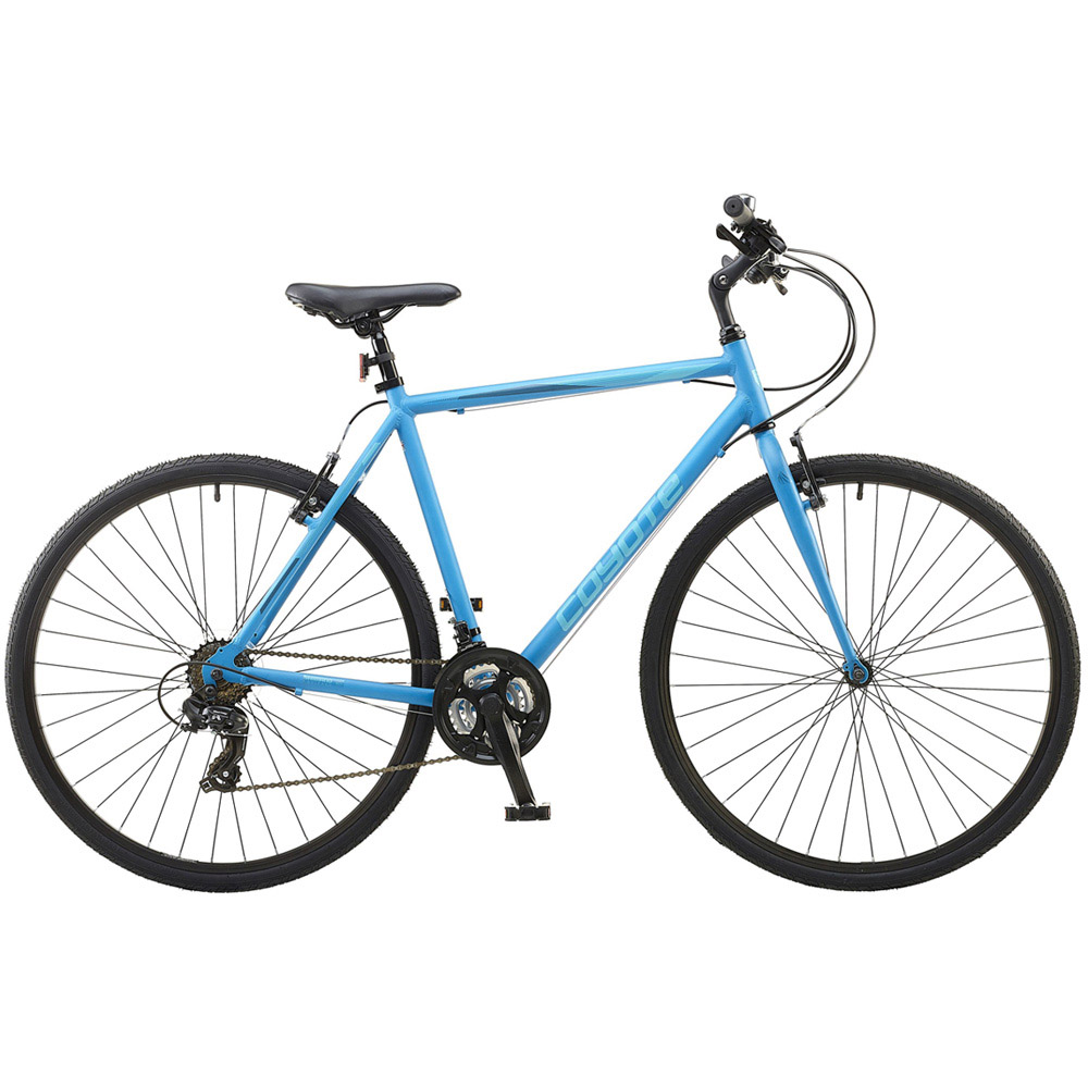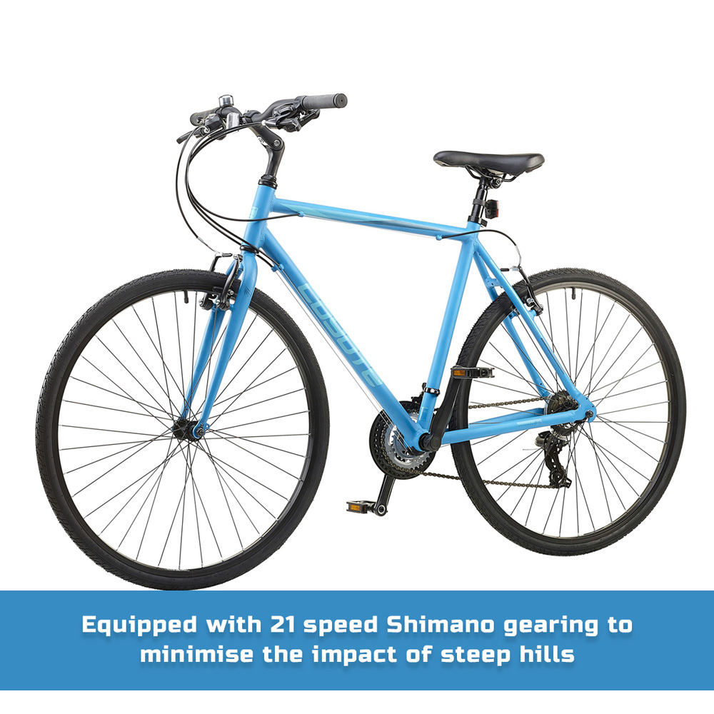 Experience adventure like never before with the Ener-j Coyote Absolute AX Gents 21 Speed 21.5 inch Blue Bike. Experience adventure like never before with the Ener-j Coyote Absolute AX Gent 21 Speed 21.5 x 700 Blue Bike. It is designed to deliver unrestricted performance with its efficient and lightweight aluminium frame. Built to last, this bike also boasts sturdy steel low-rise handlebars that offer strength and agility for all your urban and off-road adventures. With a 700c straight-blade fork, the bike reduces weight and enhances rider efficiency, allowing for smoother rides with minimal resistance. V brakes deliver powerful stopping power in all terrain conditions, ensuring safety and control on every journey. Tackle steep hills with ease thanks to the 21-speed Shimano gearing system, featuring EZ fire shifters for seamless gear changes. The mega range feature minimises the impact of challenging inclines, providing a smoother and more enjoyable riding experience. Built for versatility, the MTB tyres with a tread pattern suitable for off-road riding and rough terrain offer traction and stability, while an MTB-specific saddle ensures extra comfort during extended rides. Choose this bike and experience the perfect balance of durability and speed.