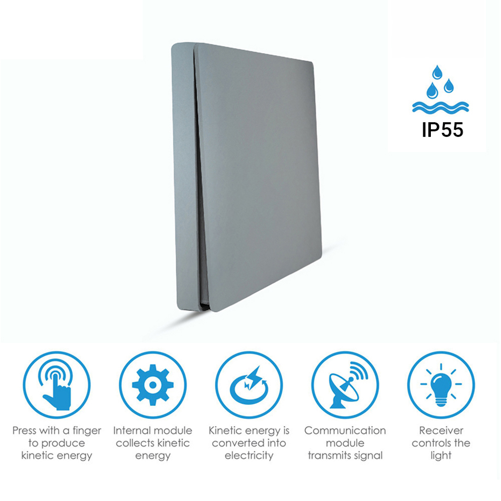 Experience the future of smart switches with this innovative Eco Series, 1 Gang Wireless Kinetic Switch in Silver Body. Powered by kinetic energy technology, this switch requires no batteries, wiring, or drilling holes, making it eco-friendly and easy to install anywhere without additional costs or labour. The encrypted wireless signal ensures secure communication, allowing the switch to work flawlessly up to 20 meters indoors and up to 80 meters outdoors. Designed to fit seamlessly into any decor, the switch is compatible with various light types and can be used in limited spaces. Enjoy the convenience of controlling multiple lights or multiple switches controlling one light with flexible coding options.