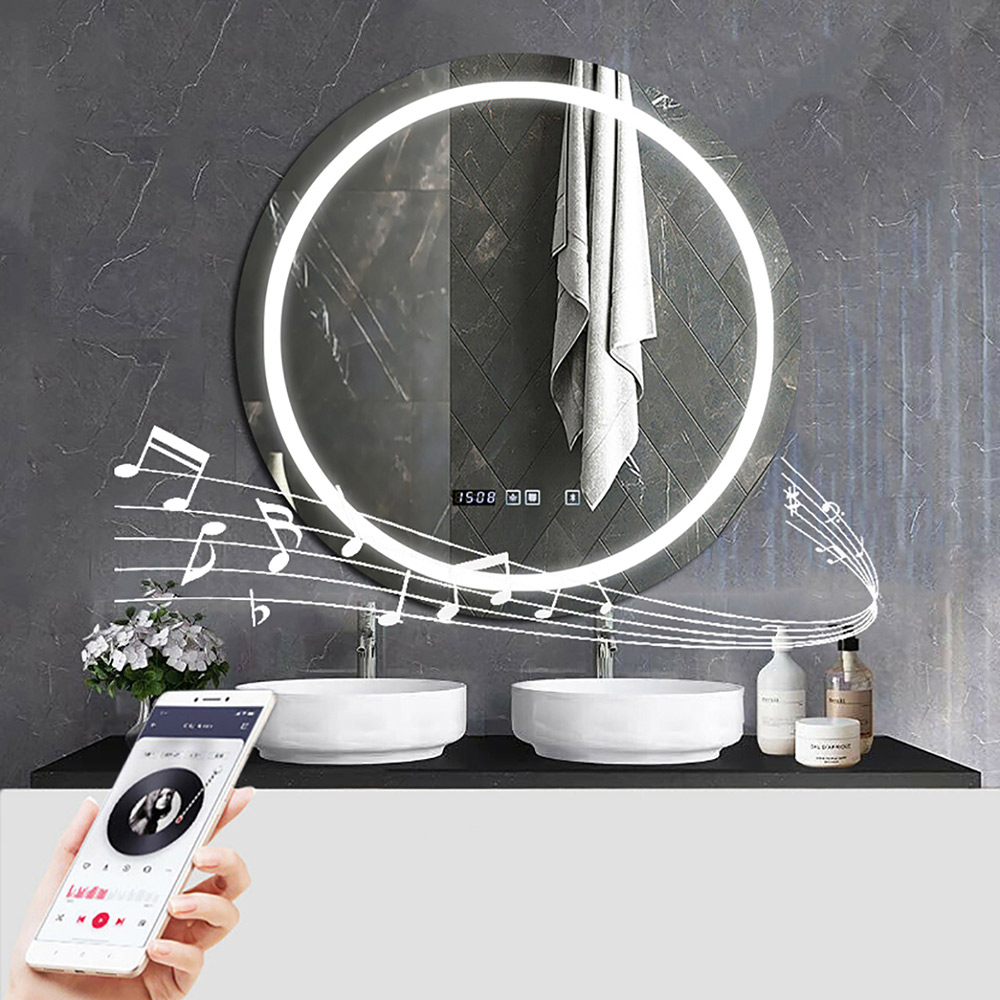 Ener-J Round LED Mirror with Bluetooth Speaker and Changeable CCT