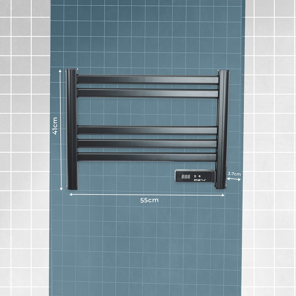 Ener-J Smart Infrared Heating Black Towel Rail with LC Screen 200w