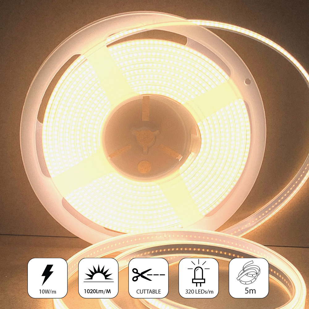 Elevate your space with this ENERJ SMART Warm White LED Strip Lights 5m. It comes with authentic stronger adhesive and 2 piece transparent fixing clips and can be reliably installed, ideal for any place that you want to be decorated and for easy visible access. You can cut the strip along the cutting marks and 1 piece cob connector extension wire provides more convenience for DIY lighting projects.