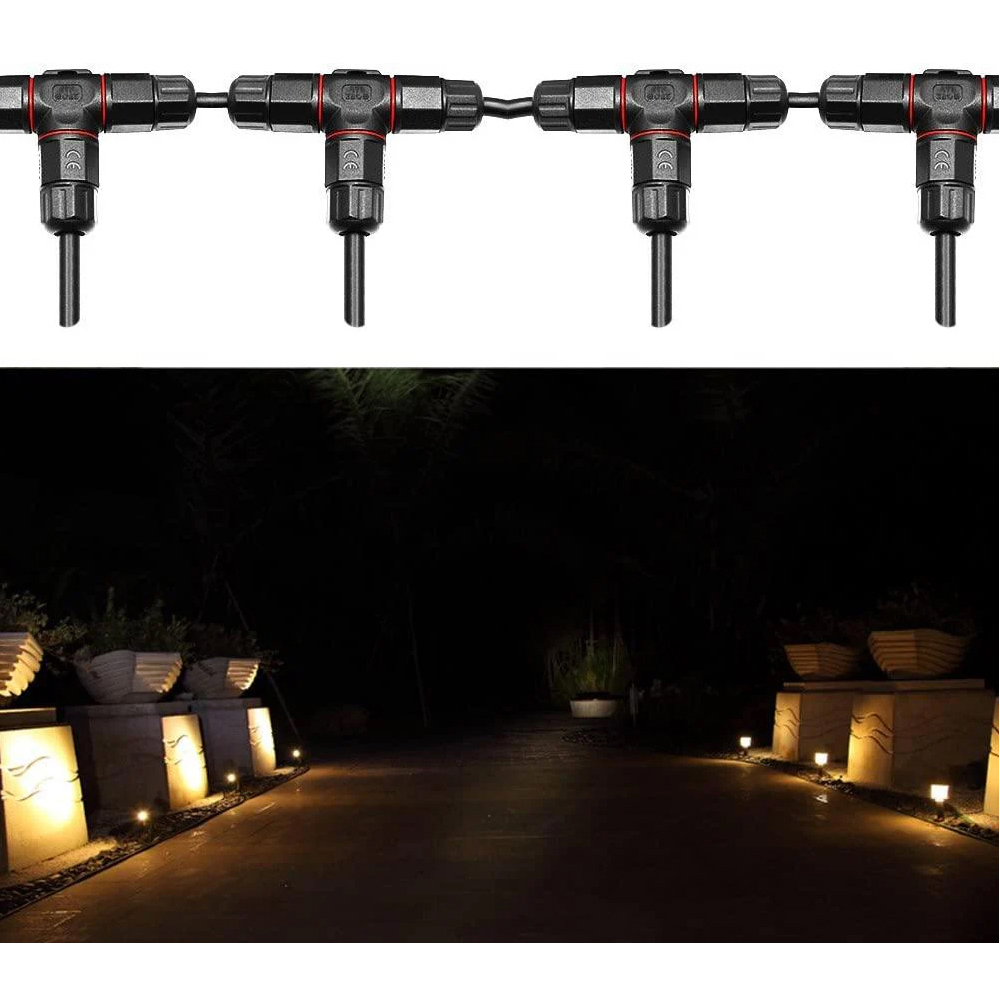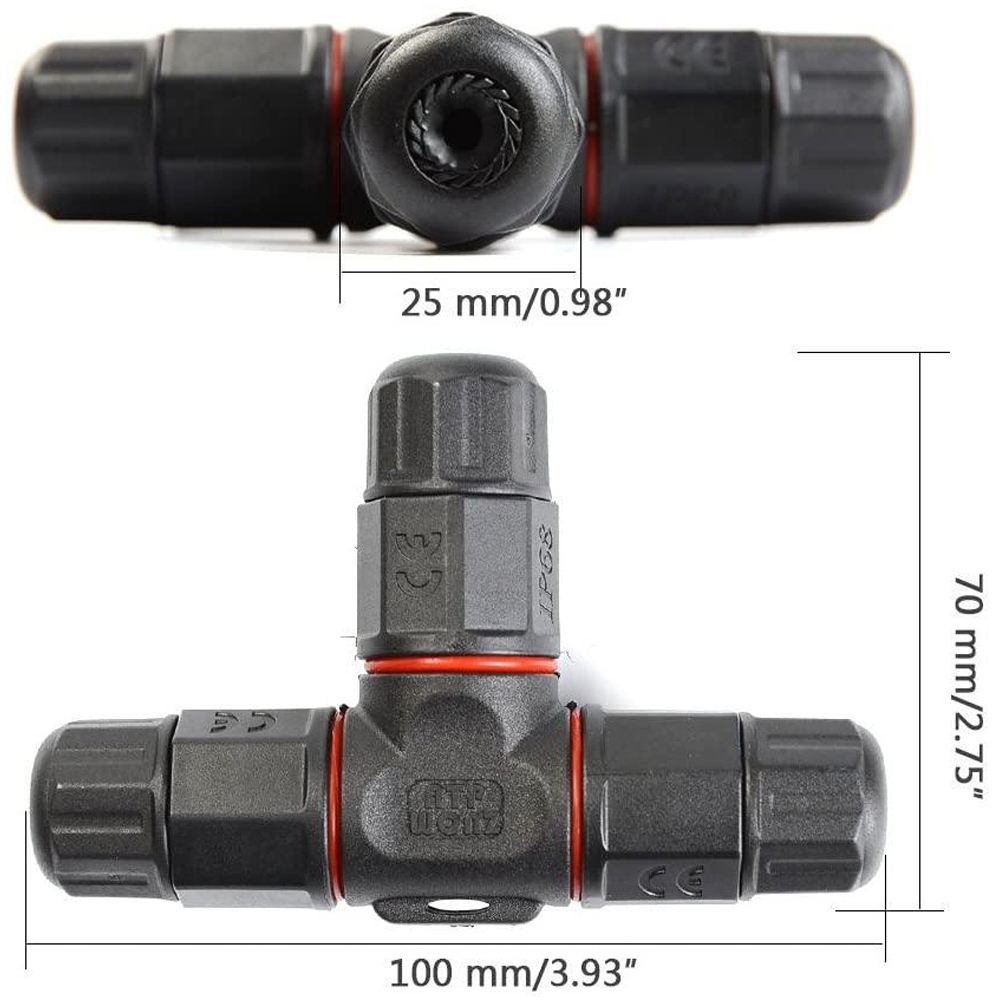 The Waterproof Inline IP68 Cable Splitter Junction Box Cable Connector is a reliable solution for outdoor cable connections. Designed with an IP68 top waterproof rating and high-quality PVC plastic material, it ensures a moisture-proof and dust-proof seal for cables with diameters ranging from 5mm to 10mm. This 3-way black cable connector is suitable for connecting 2 or 3-pin cables, providing a safe DIY tool for home, garden, or outdoor lighting projects. IP68 waterproof rating: with a top IP68 waterproof rating and seal rubber washers, this cable splitter ensures superior protection against moisture and dust, making it perfect for outdoor use. Easy connection: the connectors come with "live wire," "neutral wire," and "earth wire" for easy and organized cable connection. The colour-coded design (gold for live wire, silver for neutral wire, black for earth wire) simplifies the installation process. Safe DIY tool: suitable for fast connection, repair, and extension of electric wires, this junction box cable connector provides a safe and efficient solution for DIY projects.