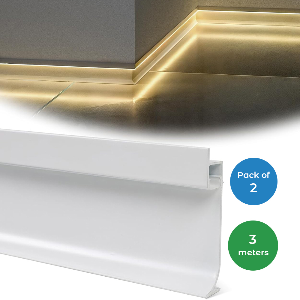 The LED Skirting Aluminium Profile is an elegant and functional solution designed to enhance your lighting setup.; Featuring a sleek white housing, this 3-meter profile is ideal for installation along baseboards or skirting boards,; offering a modern aesthetic while accommodating LED strips for ambient or task lighting. Constructed from durable aluminium with a polycarbonate cover, this profile ensures long-lasting performance and easy heat dissipation.