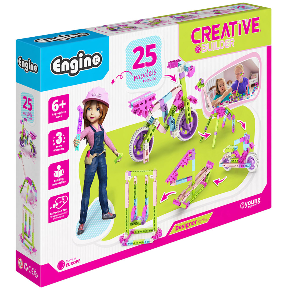 Let your child unleash creativity and imagination to present the ultimate building challenge with the Engino Creative Builder 25 Models Designer Set. Getting children interested in engineering and construction building can be quite a difficult task. The Creative Builder Designer Series tackles this problem by linking imaginative play with 3D model creation. The vivid colours of lilac, fuchsia, light green and sky blue will surely intrigue little ones and urge them to explore their creative side. There are 25 models to build in total, from cars, scooters and helicopters to motorbikes, planes, and trikes. Full instructions are included. There is also an app to download with instructions and more. Suitable for ages six years and above.