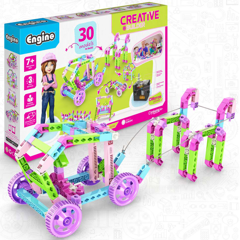 Challenge your creative mind with this amazing Creative Builder Designer Motorized Set from Engino. The vivid colours of lilac, fuchsia, light green and sky blue will surely intrigue our little ones and urge them to explore their creative side. There are 30 models to build in total from cars, scooters, and helicopters, to motorbikes, planes, and trikes. Additionally, included Motor Power helps bring your creations to life with a high torque gearbox along with a forward and reverse switch. Full instructions are included and there is also an app to download with instructions and more. Requires two AAA batteries, not supplied. Suitable for ages six years and above. Comes with a three-year warranty.