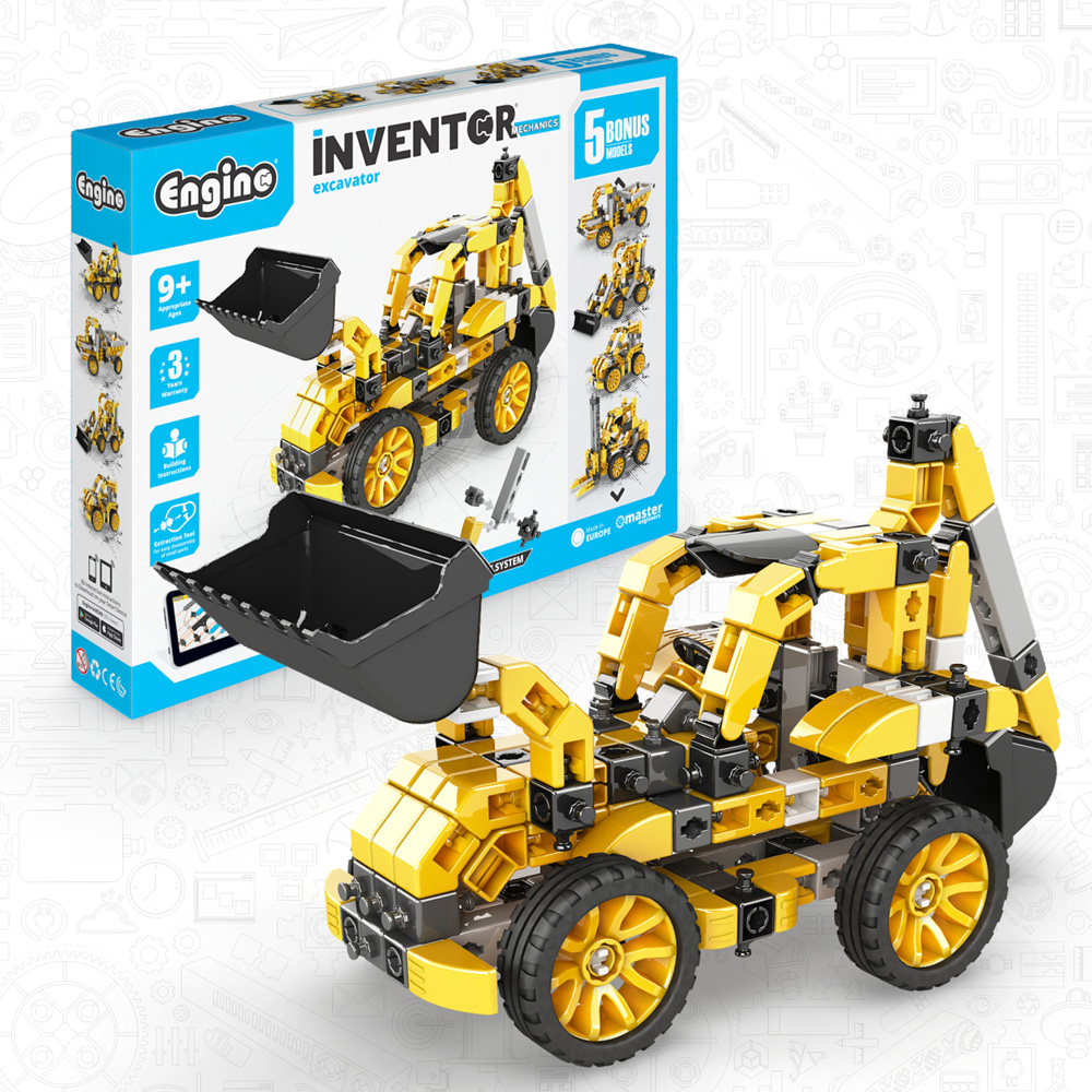 Let your child unleash creativity and imagination with the Engino Inventor Mechanics Excavator with 5 Bonus Models. The Inventor Mechanics series has a thematic approach with multi-model capabilities, featuring an impressive main model of an excavator and the further options of building four other models. The creative snap-fit system allows you to build many different models with ease. A library of patent-pending components has been added to the Engino system, which enhances both aesthetics and technical features. The parts include high-precession wheels, mechanisms and snap-fit curved surfaces. Full printed instructions are included. There is also a free app to download with instructions and more. Suitable to ages nine years and above.