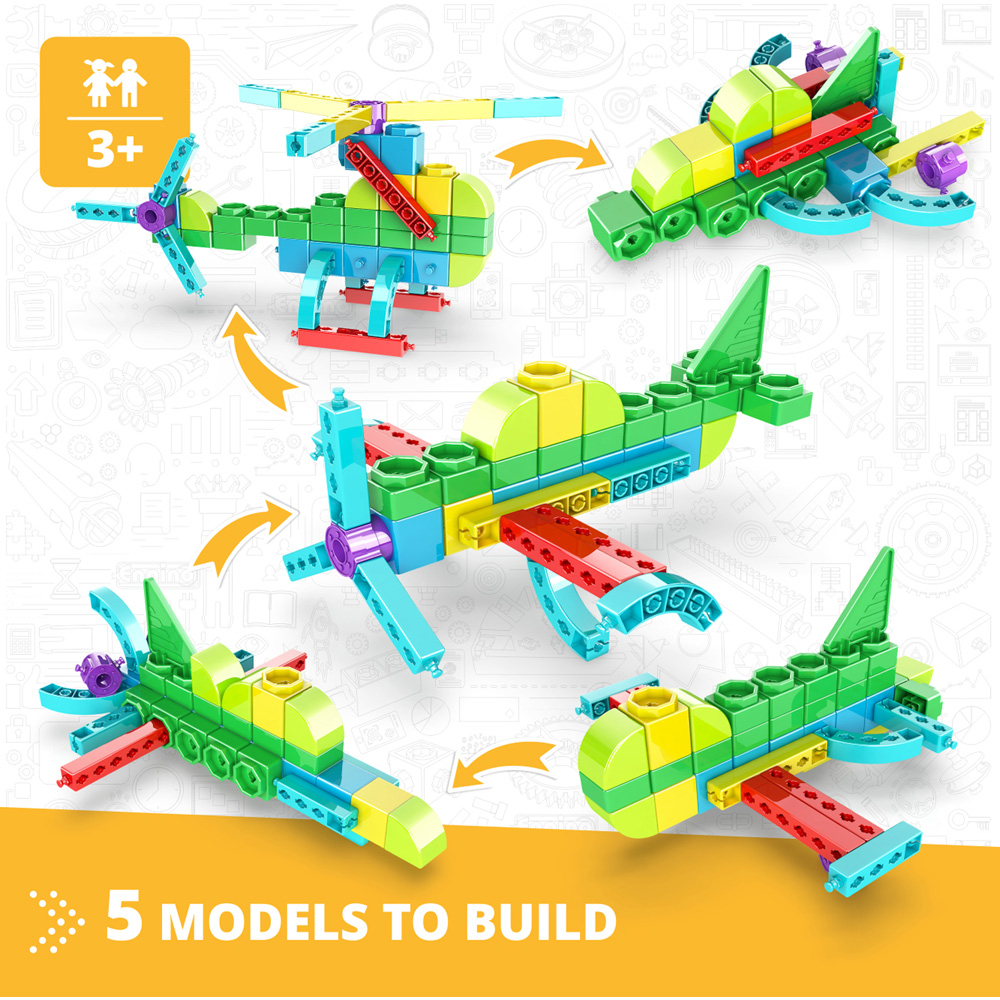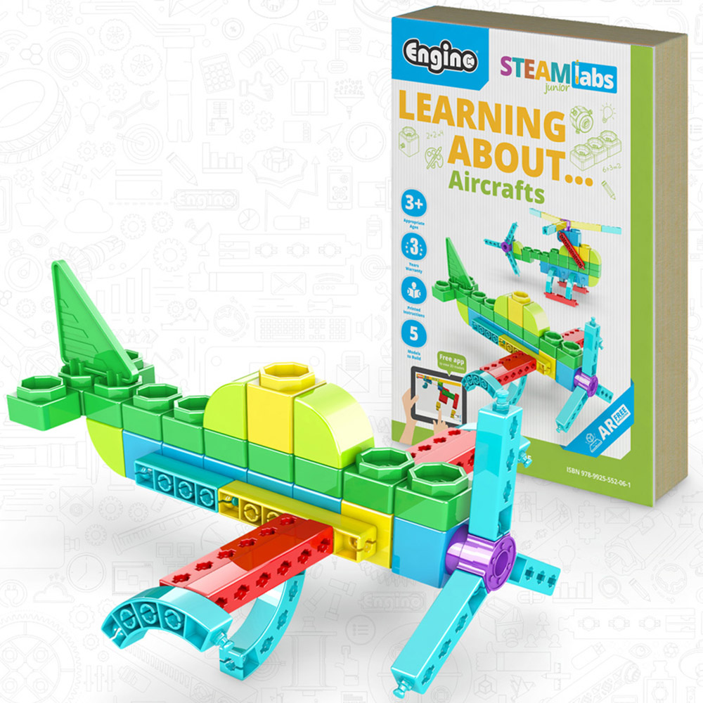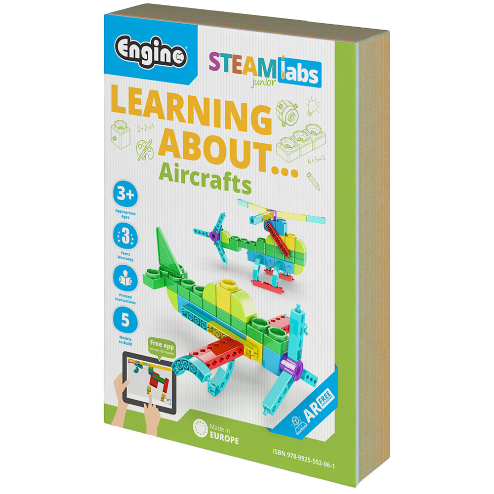 The Engino Learning About Aircrafts Building Set has been developed for preschool children, both boys and girls. The aim is to teach children about core skills. The series covers four different topics that resonate with children of this age. The products are positioned as toy-books by bundling the box with the book and shrink-wrapping together. With the help of an adult, preschool children can learn interesting facts about each theme, while also building their model following the step-by-step instructions. More activities come next, such as colouring pictures, connecting dots and tracing numbers or letters of the alphabet. Additional activities are included that help kids learn about shapes, colours and maths! These books come with our free Augmented Reality app (AR) that makes content much more engaging and entertaining. Suits ages 3 years and above.