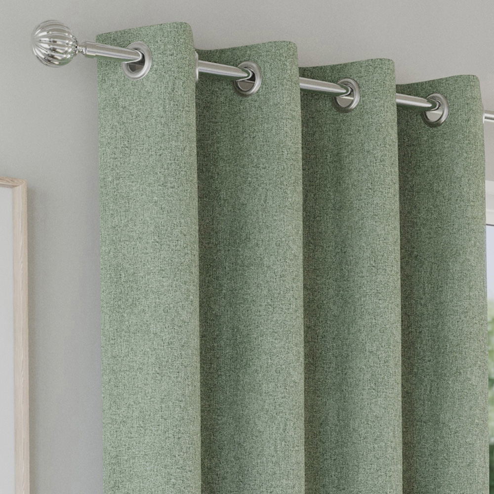 Sleep better and save energy on bills with the Enhanced Living Austin Green Thermal Blackout Eyelet Curtains 229 x 229cm. Made from 100% blackout textured linen look-fabric, these curtains block 100% incoming light, creating the ideal environment for restful sleep. With thermal efficiency, they help regulate room temperature, keeping spaces cool in summer and warm in winter while reducing energy costs. The eyelet header ensures easy installation and smooth operation. They provide excellent noise reduction, ensuring a more peaceful and restful night's sleep, making them perfect for bedrooms. This pack includes two ready-made curtains.