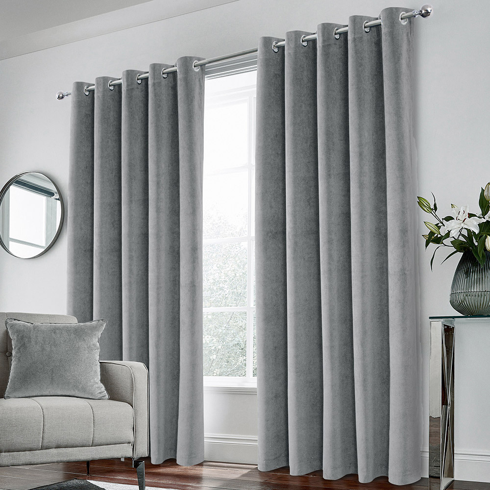Enhance your home decor with this pack of 2 Enhanced Living Hampton Grey Velvet Blackout Thermal Eyelet Curtain 168 x 229cm. This curtain features a luxurious velvet fabric that not only looks great but also feels incredibly soft to the touch. The eyelet top design makes it easy to install, and it comes in a pair, perfect for covering larger windows or doors. The curtain is 100% blackout, providing complete darkness for a better night’s sleep or to create the perfect movie-watching atmosphere. This blackout feature also helps to reduce outside noise and keeps the room temperature comfortable by blocking out heat or cold. The thermal insulation properties make it energy efficient, helping to reduce your energy bills by keeping your room warm in winter and cool in summer. It has been shown to decrease energy loss at windows by over 20%. Wash care: Hand wash only, do not bleach or tumble dry, and cool iron on reverse. Note: The rod is not included.